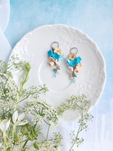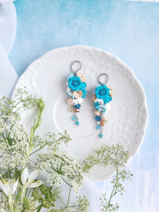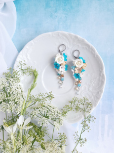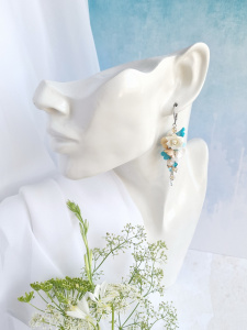 To vše se snoubí v této letní řadě květinových náušnic. Jsou zhotovené z chirurgické oceli, takže se nemusíte bát alergických reakcí ani změny barvy kovu. Každý pár zdobí množství ručně tvořených květů v nádherné kombinaci tyrkysové, světlounce béžové a zlatavé barvy.