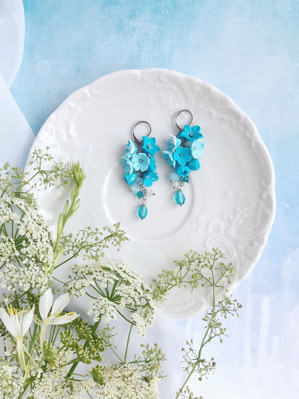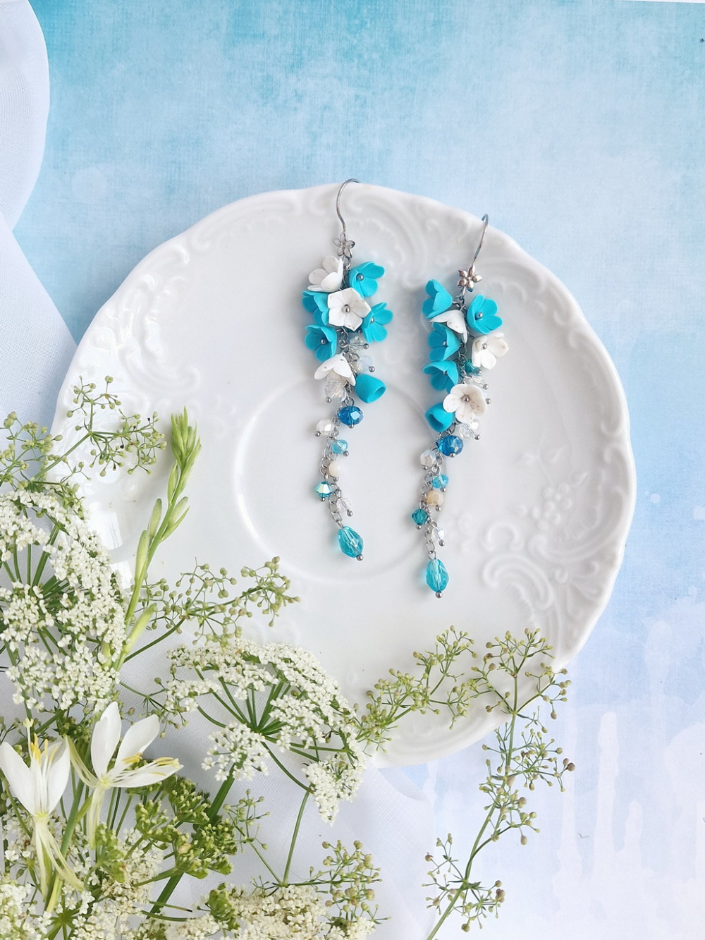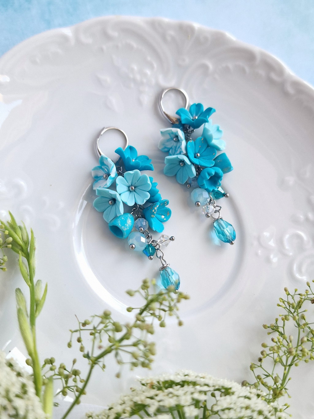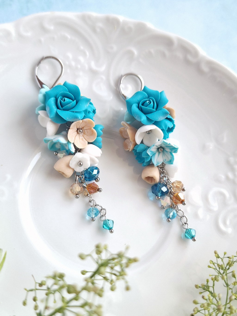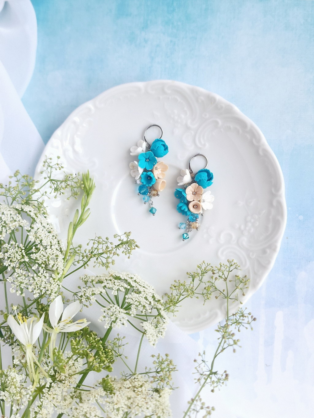 To vše se snoubí v této letní řadě květinových náušnic. Jsou zhotovené z chirurgické oceli, takže se nemusíte bát alergických reakcí ani změny barvy kovu. Každý pár zdobí množství ručně tvořených květů v nádherné kombinaci tyrkysové, světlounce béžové a zlatavé barvy.