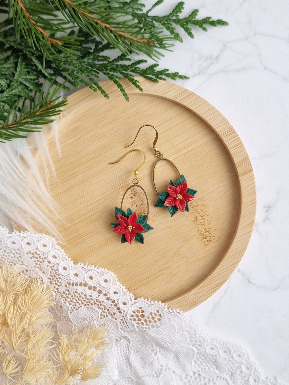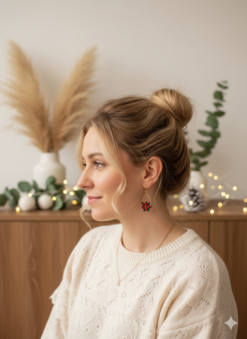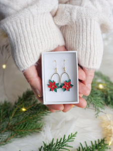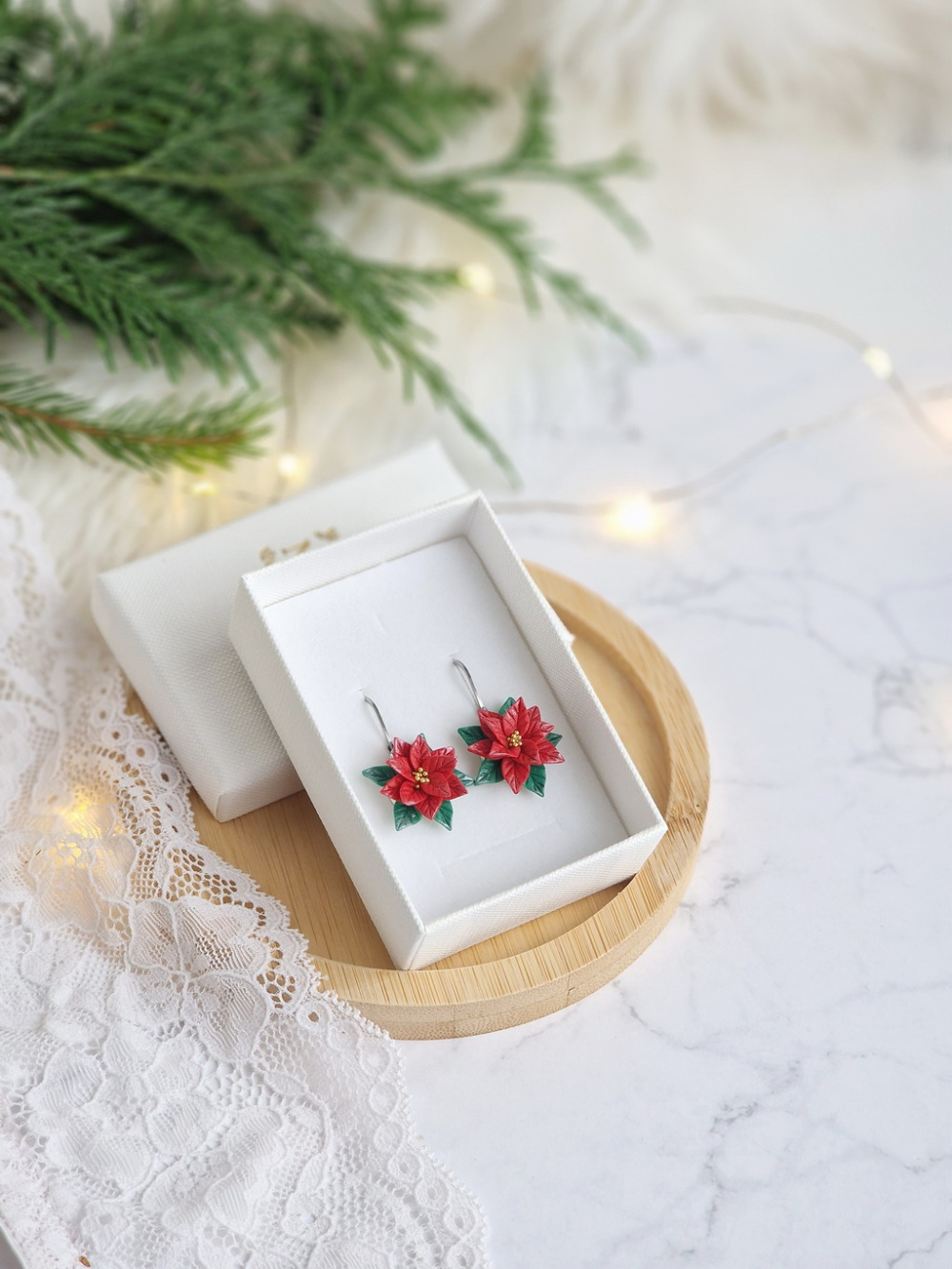 Kouzelné vánoční náušnice s poinsettií, které vás rozzáří. Lehounké a příjemné na nošení, stanou se nezbytnou součástí vaší vánoční kolekce šperků.