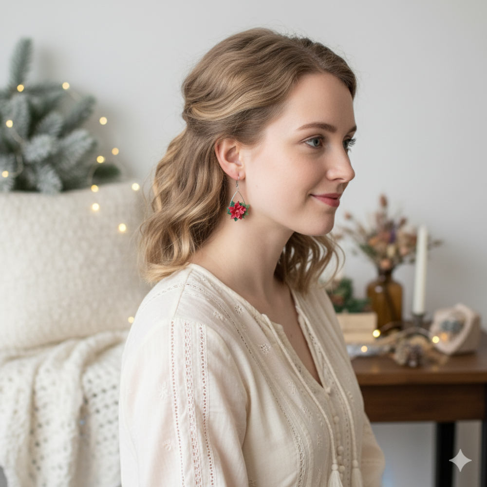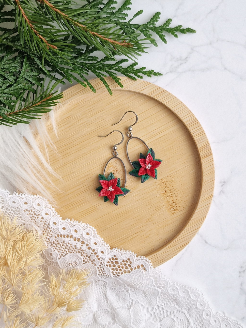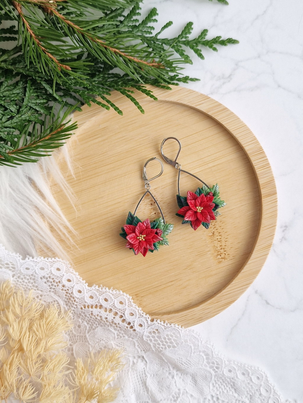 Kouzelné vánoční náušnice s poinsettií, které vás rozzáří. Lehounké a příjemné na nošení, stanou se nezbytnou součástí vaší vánoční kolekce šperků.