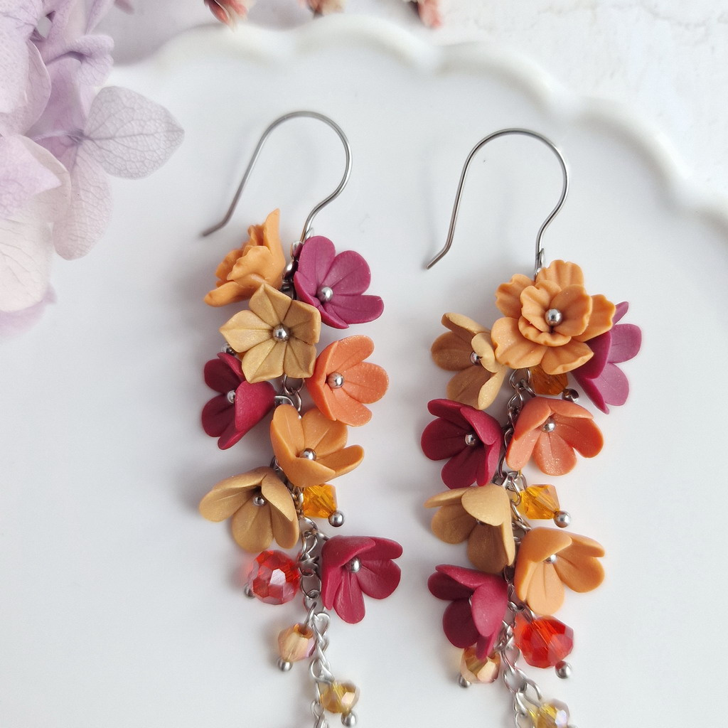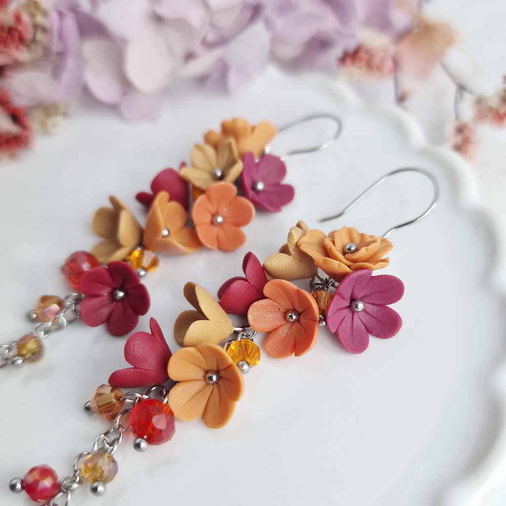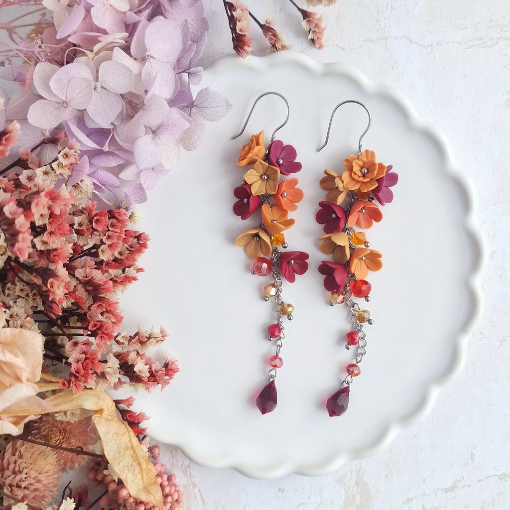 Floramaria - extra dlouhé květinové náušnice se slzičkami