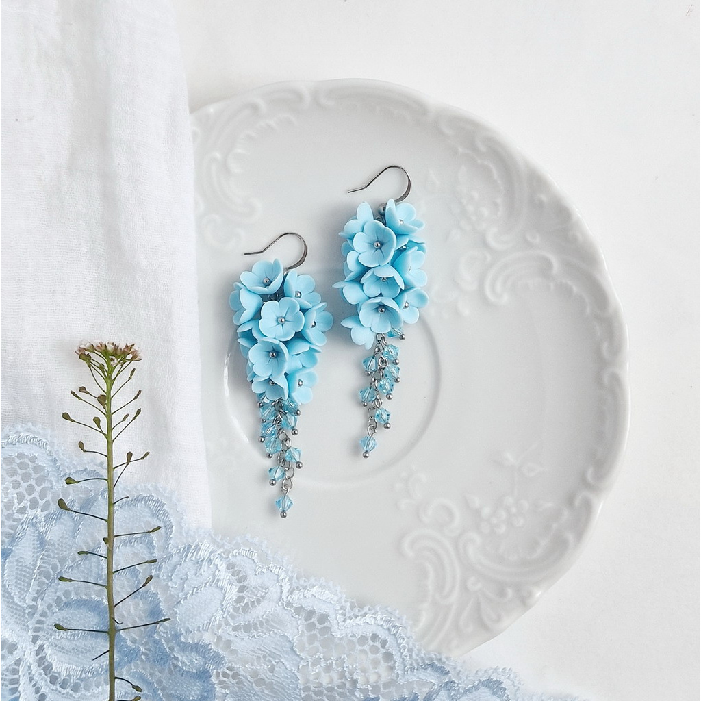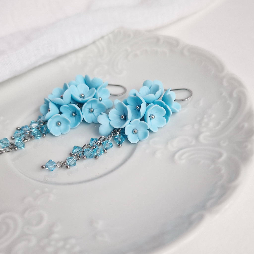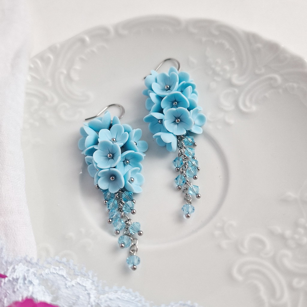 Náušnice v oblíbeném bleděmodrém odstínu - čisté jako letní obloha za horkých dnů, svěží jako drobné něžné kvítky pomněnek.