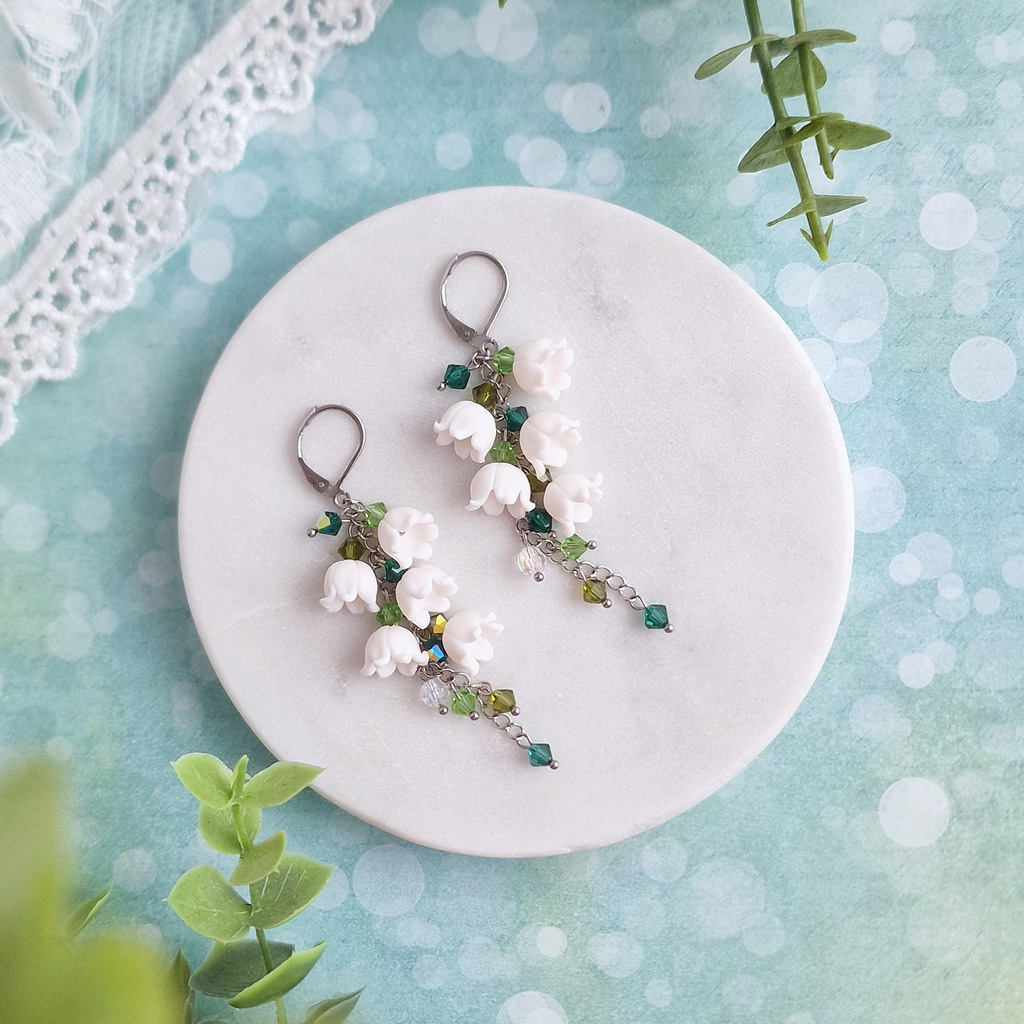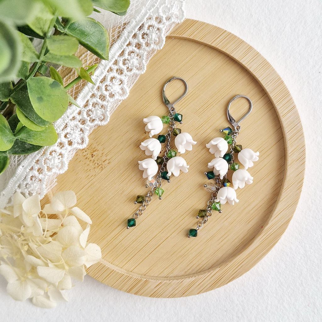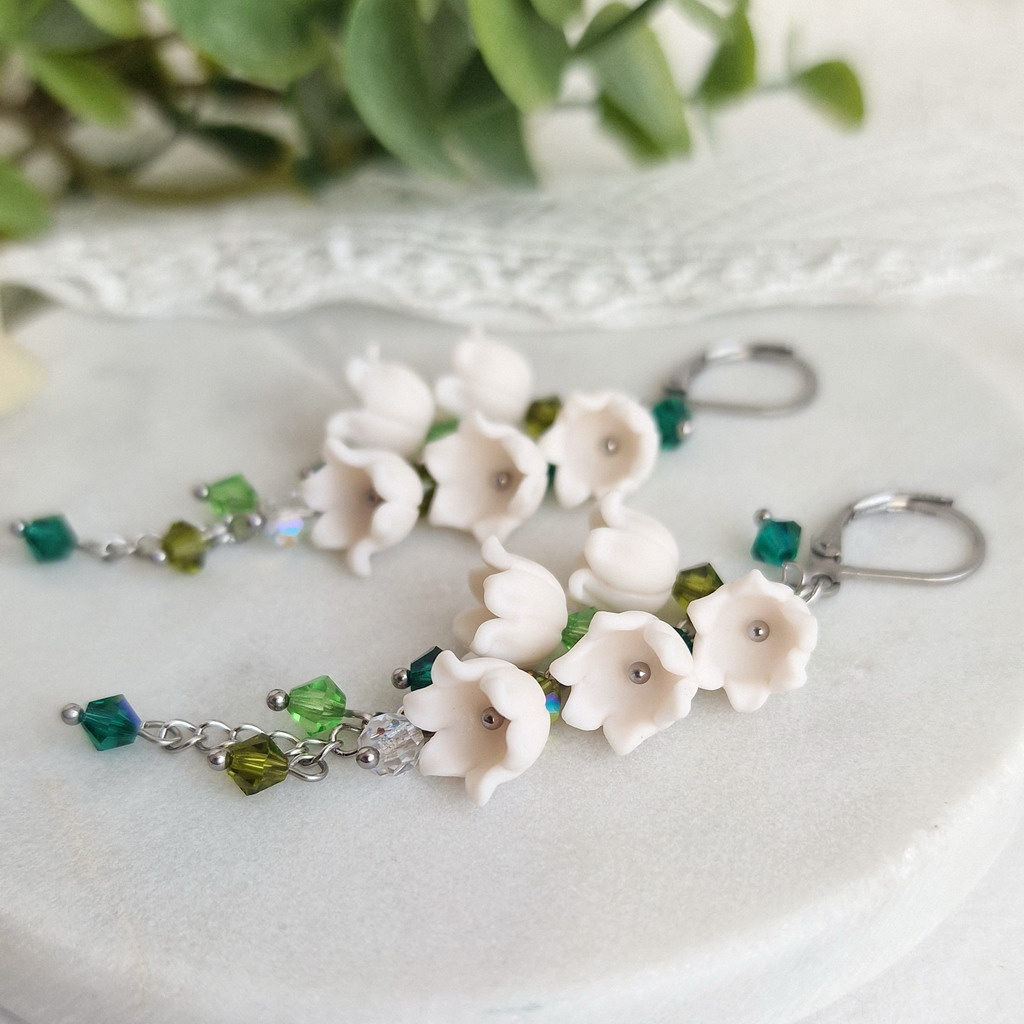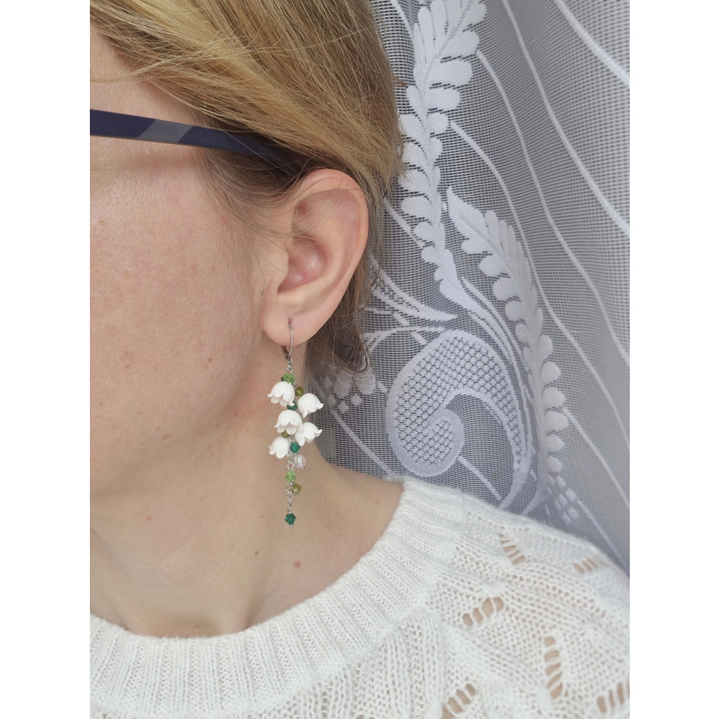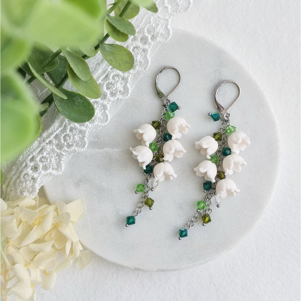 Lily - dlouhé ocelové náušnice konvalinky odstíny zelené