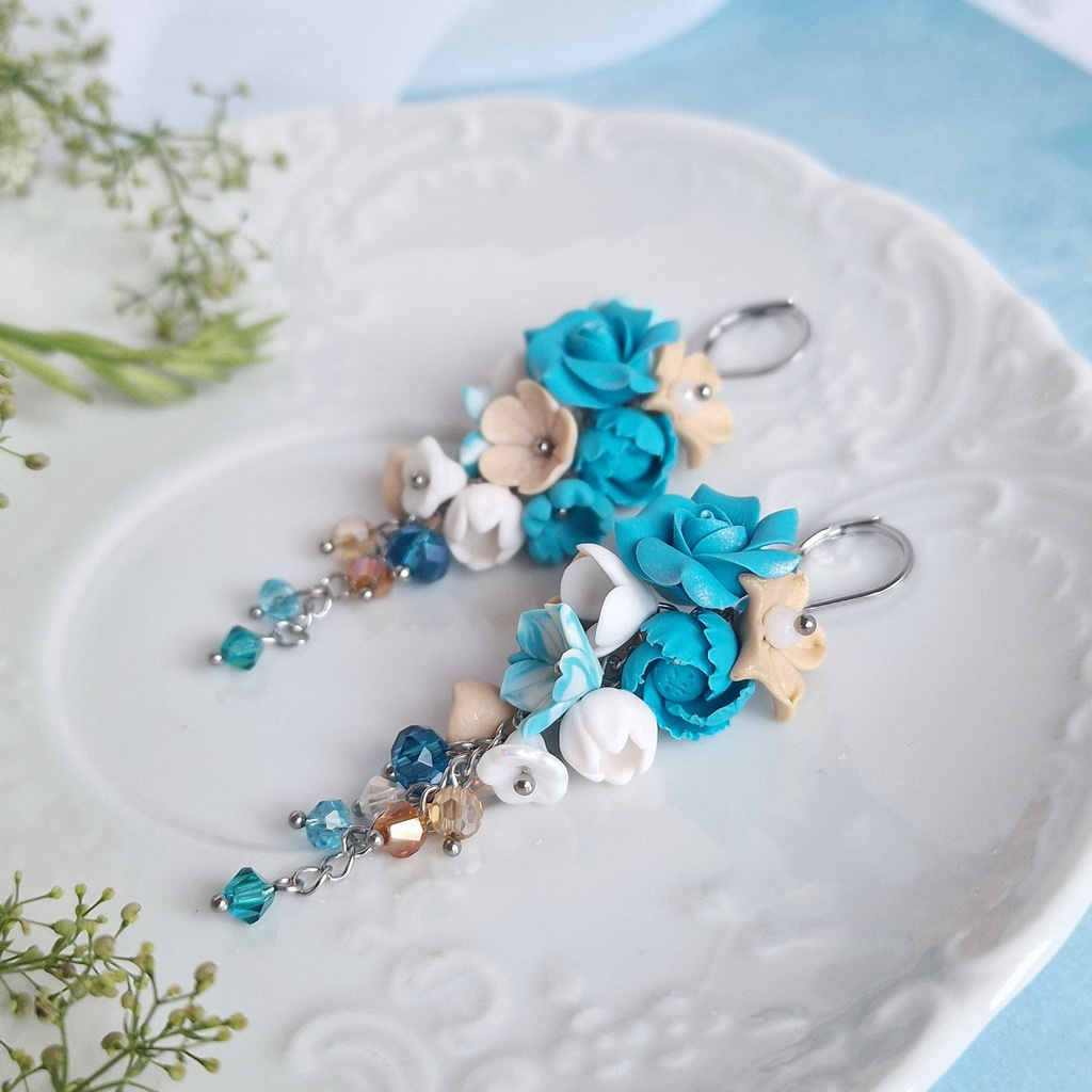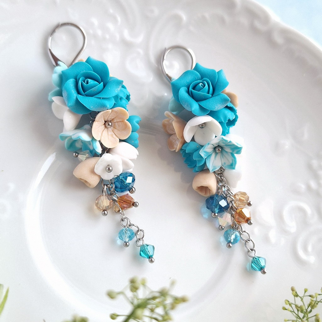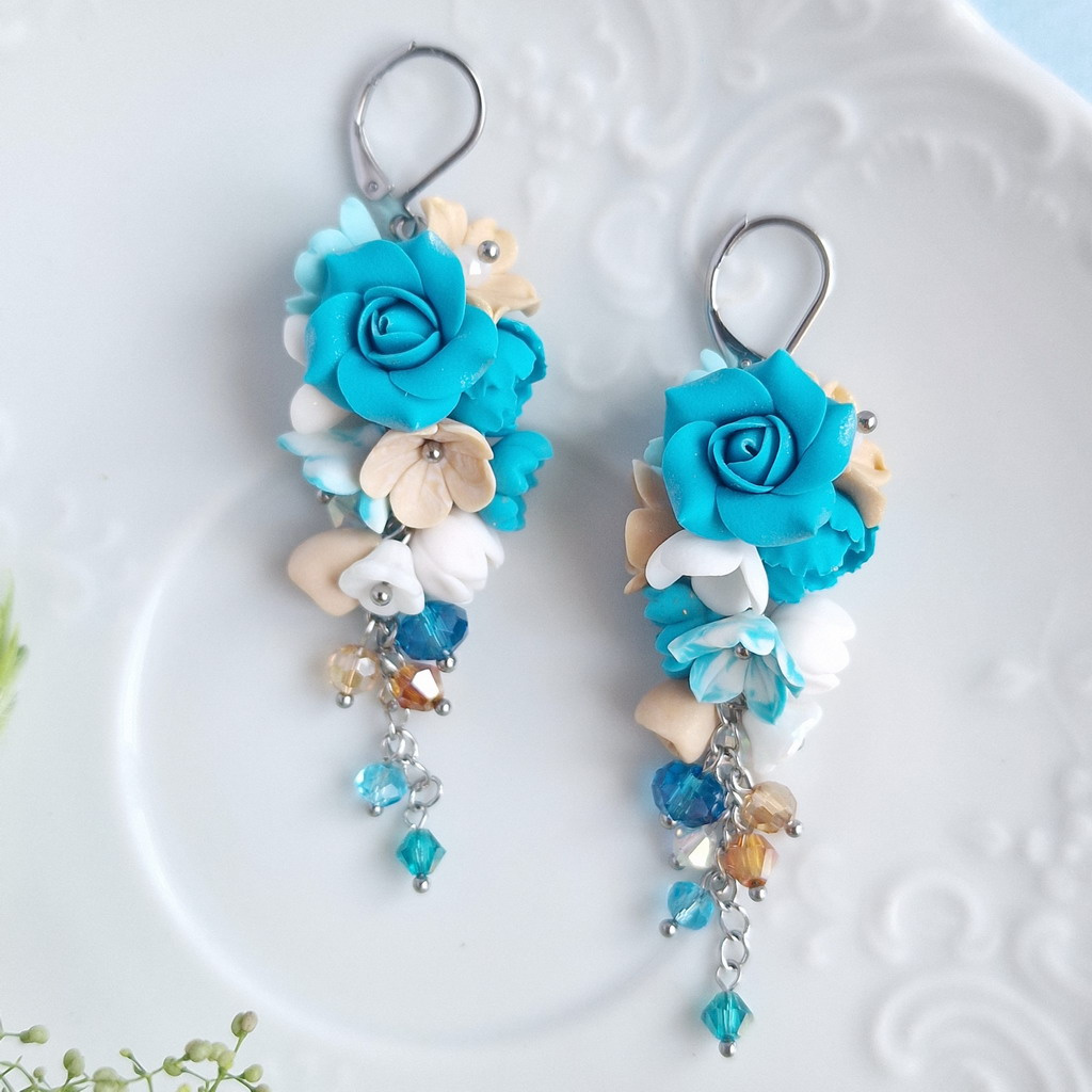 Jsou zhotovené z chirurgické oceli, takže se nemusíte bát alergických reakcí ani změny barvy kovu. Každý pár zdobí množství ručně tvořených květů v nádherné kombinaci tyrkysové, světlounce béžové a zlatavé barvy.