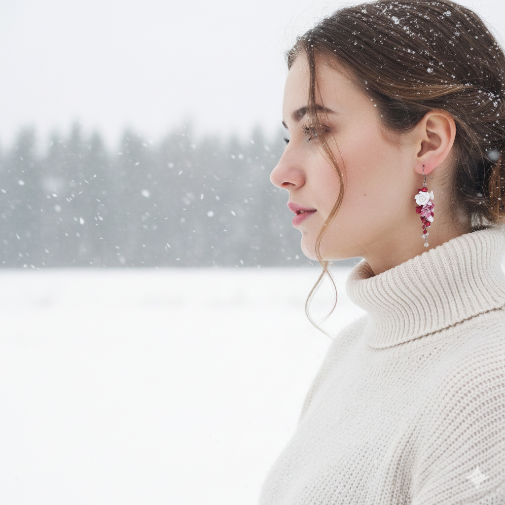 Nová limitovaná kolekce květinových náušnic v odstínech sváteční červené a čisté bílé je ztělesněním zasněné zimní krásy.