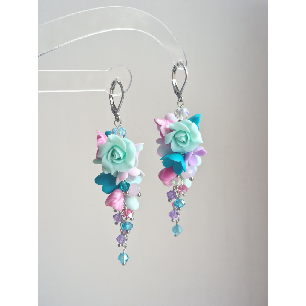 Maya - dlouhé květinové náušnice s růžemi jarní