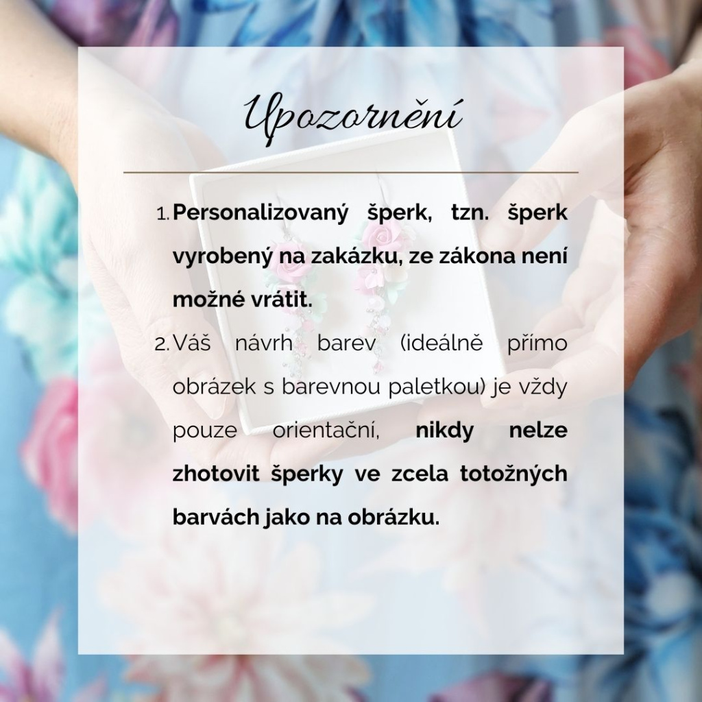 Květinové šperky nejsou křehké, ale vyžadují stejnou lásku a péči, se kterými byly vyrobeny. Při správném zacházení vám budou dělat radost po dlouhý čas.