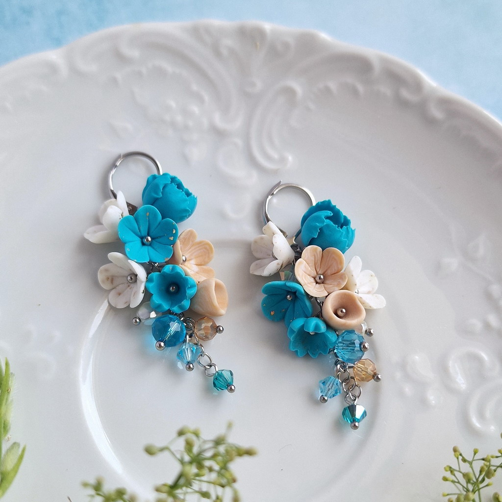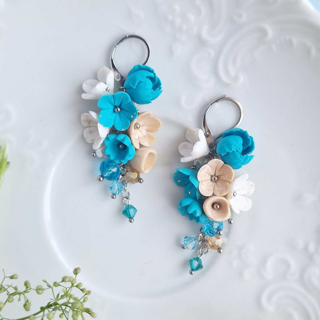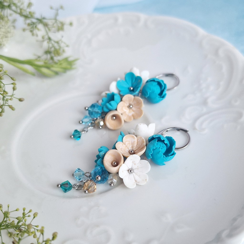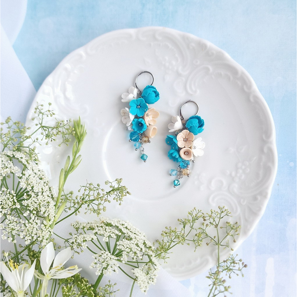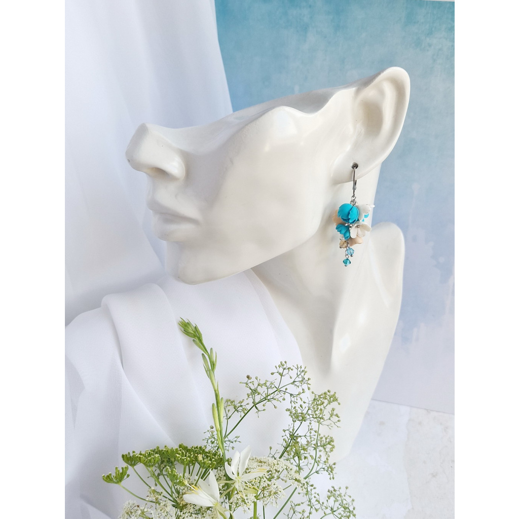 Barevná kombinace z odstínů modré tyrkysové barvy dodává náušnicím svěží a moderní vzhled a připomene vám letní dny plné slunce a svobody, kdykoliv si je nasadíte.