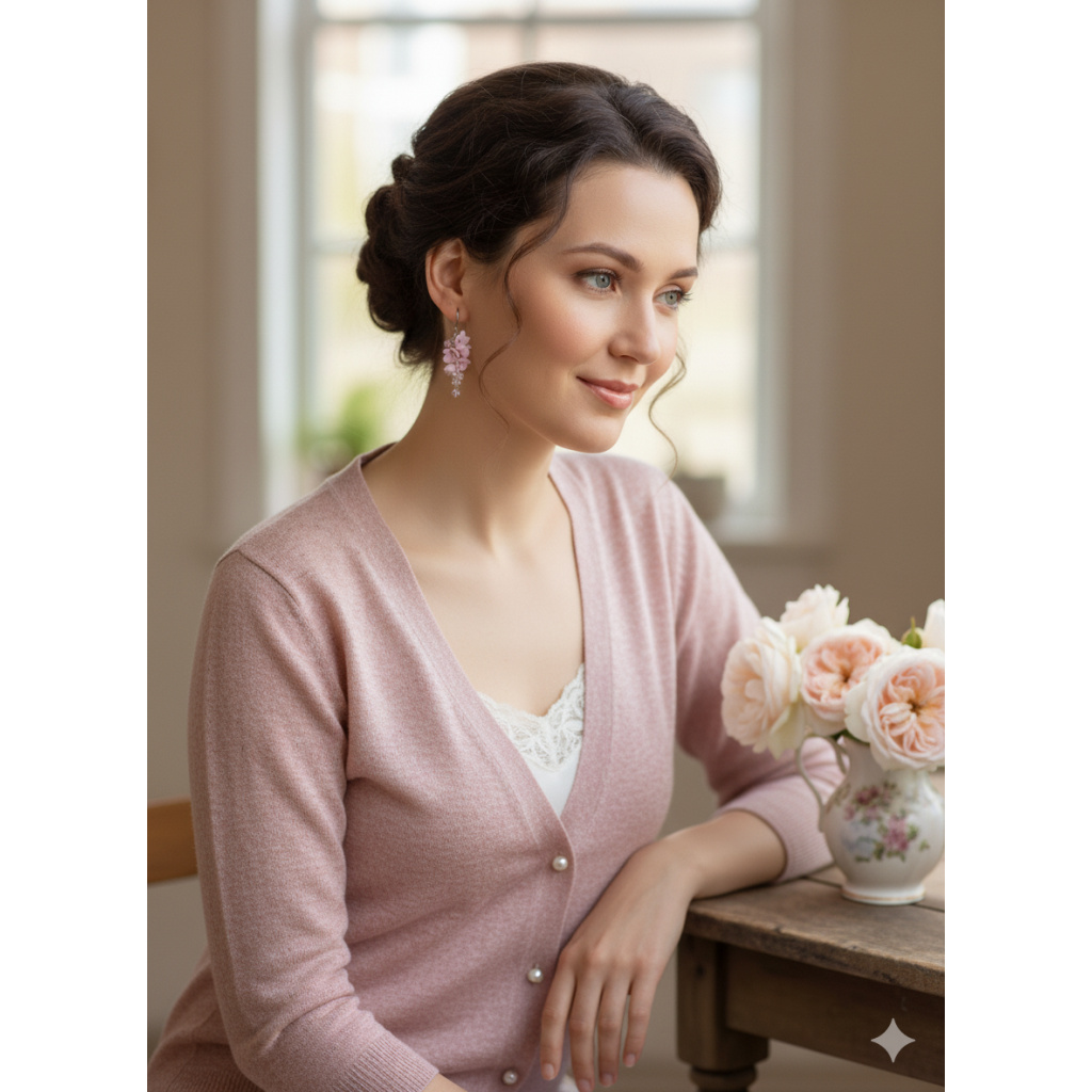 Tyto náušnice jsou ideální pro ženy, které milují romantický a jemný styl. Dodají lehkost a eleganci každému outfitu – ať už na procházce městem, nebo při slavnostní příležitosti. Skvěle se hodí k lehkým šatům i blůzkám s květinovým vzorem.