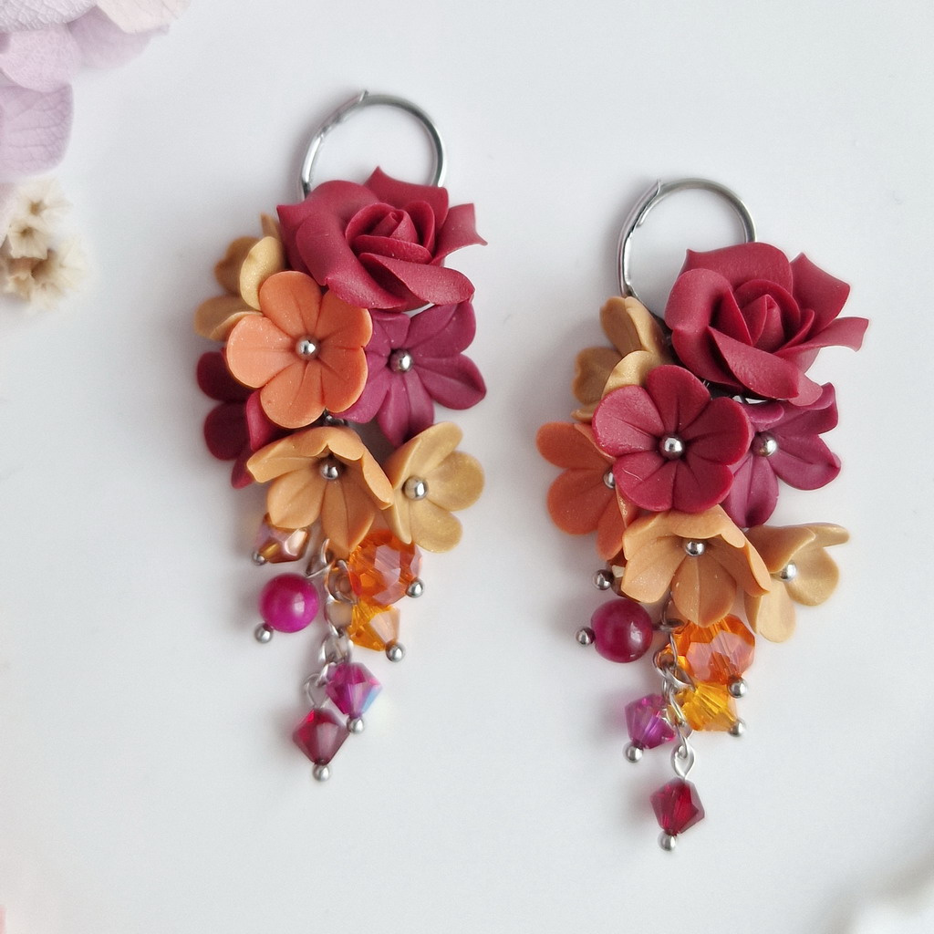 Rhona - kratší květinové náušnice s růžemi
