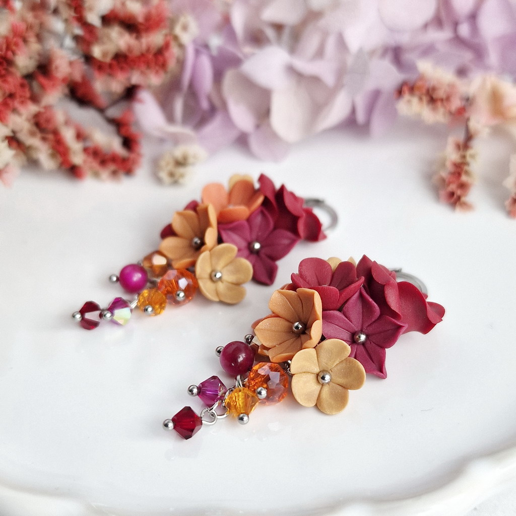 Vynikají malými, ručně tvořenými kvítky a výběrem skleněných kamínků v hřejivém barevném ladění. Komponenty z chirurgické oceli zaručí dlouhou životnost a jsou vhodné i pro citlivou pleť.