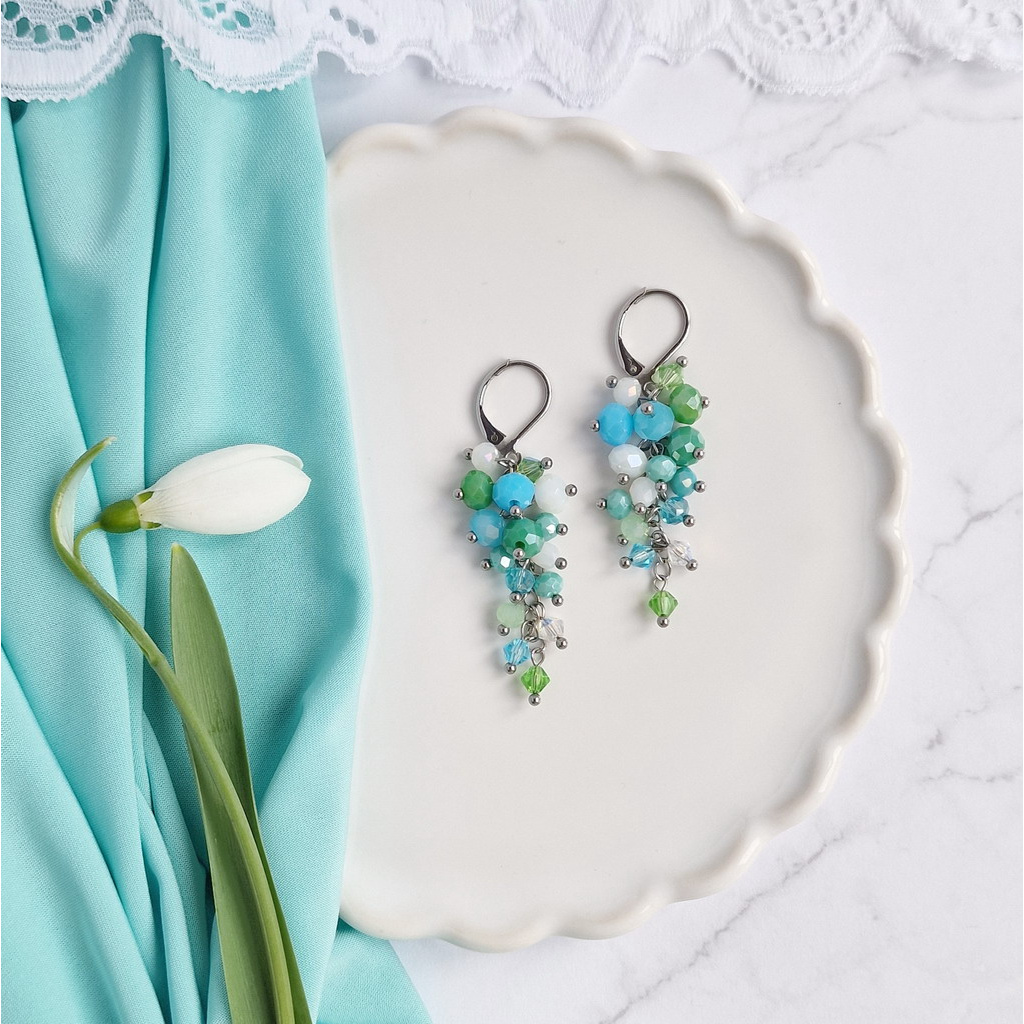 Beatris - náušnice se skleněnými krystaly kratší jarní
