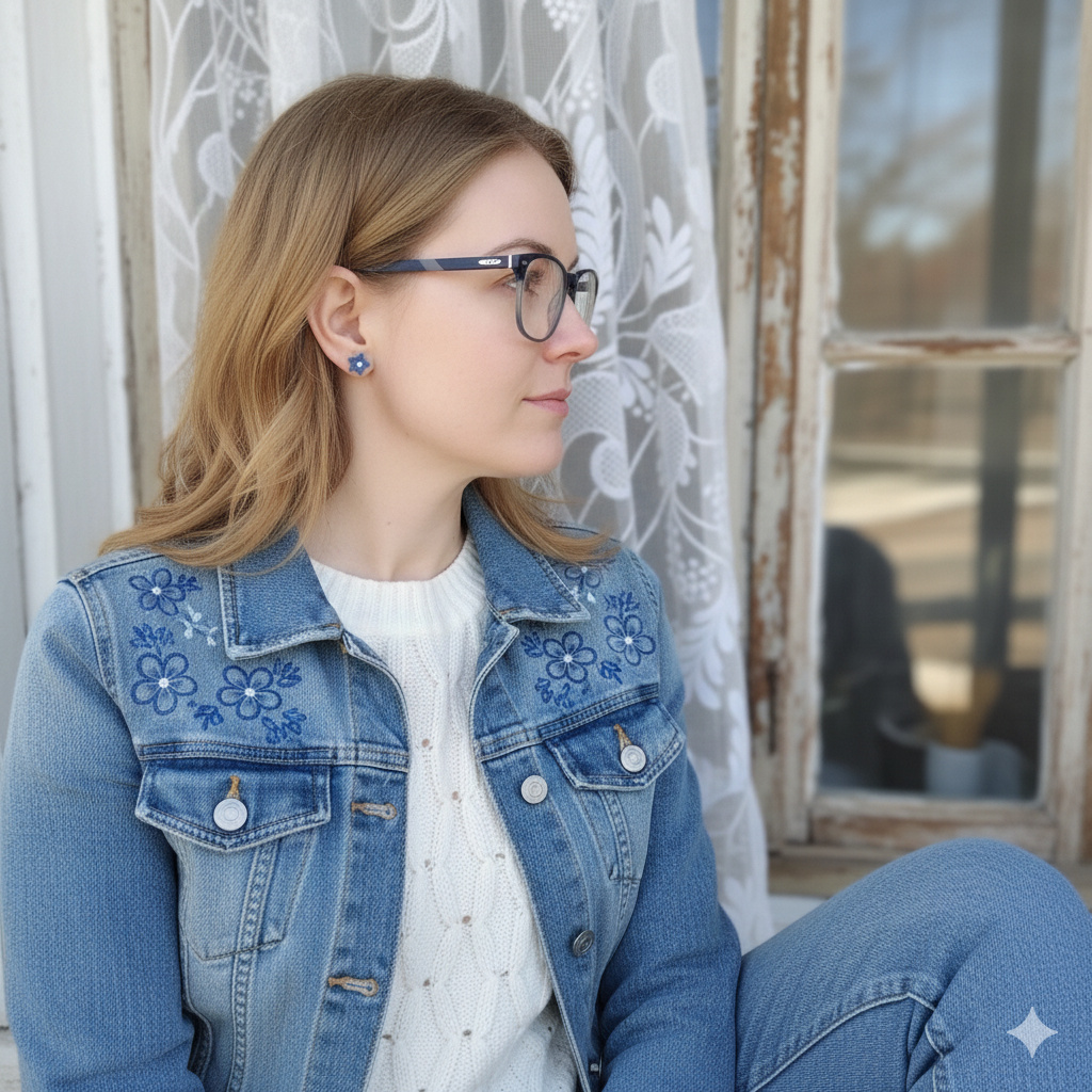 Pamatujte prosím na to, že každá džínovina má jinou barvu, takže květinky pravděpodobně nebudou ladit přesně. Stejně tak barva náušnic na fotce se může lišit od skutečnosti.