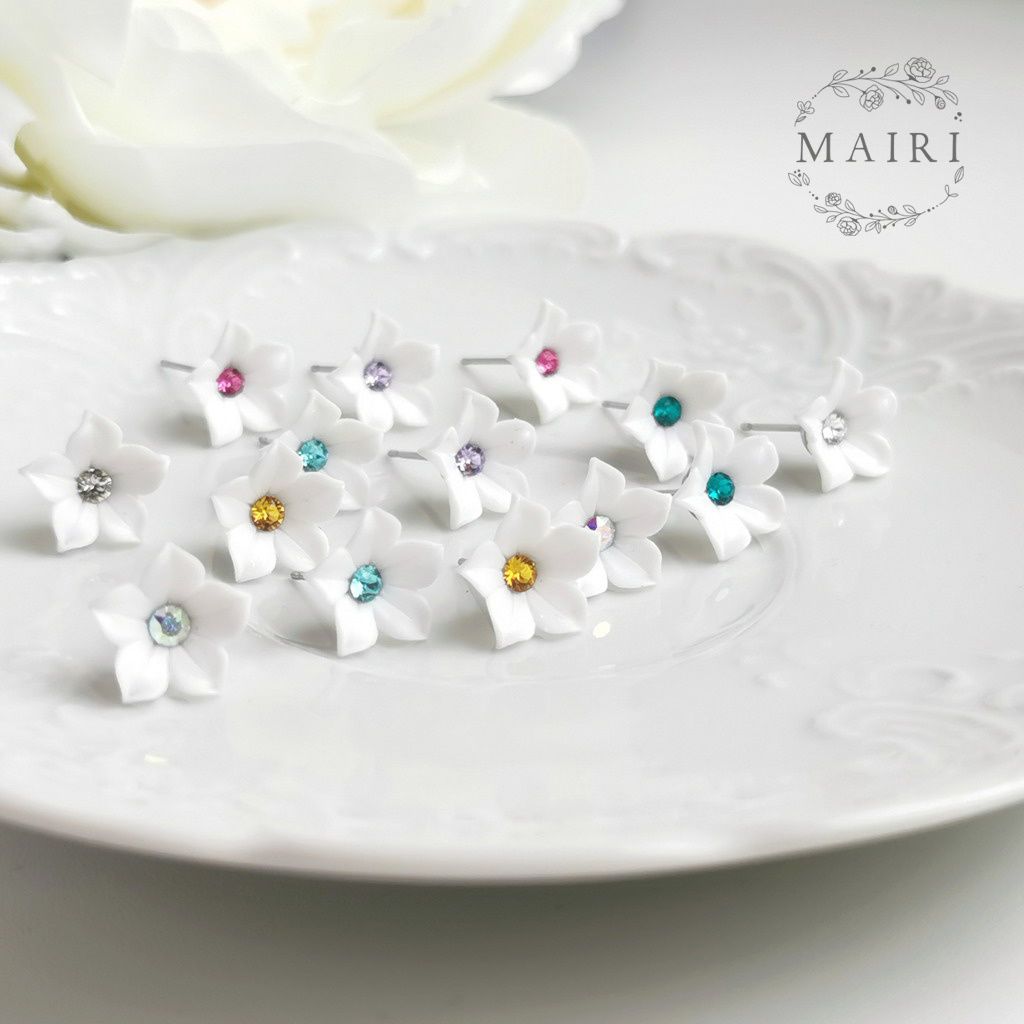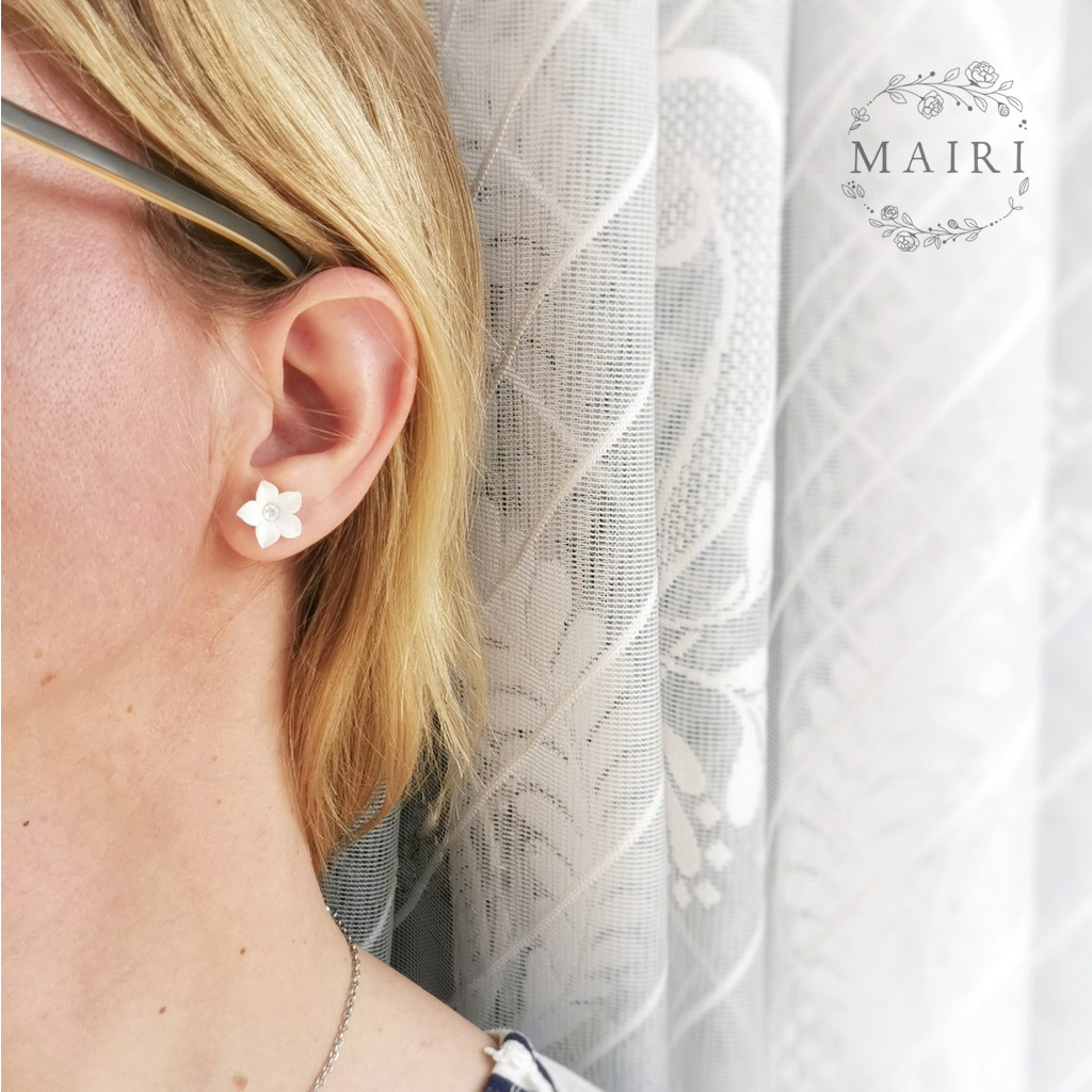 Něžné malé kvítky do oušek, se špetkou třpytu a velkou dávkou romantiky.