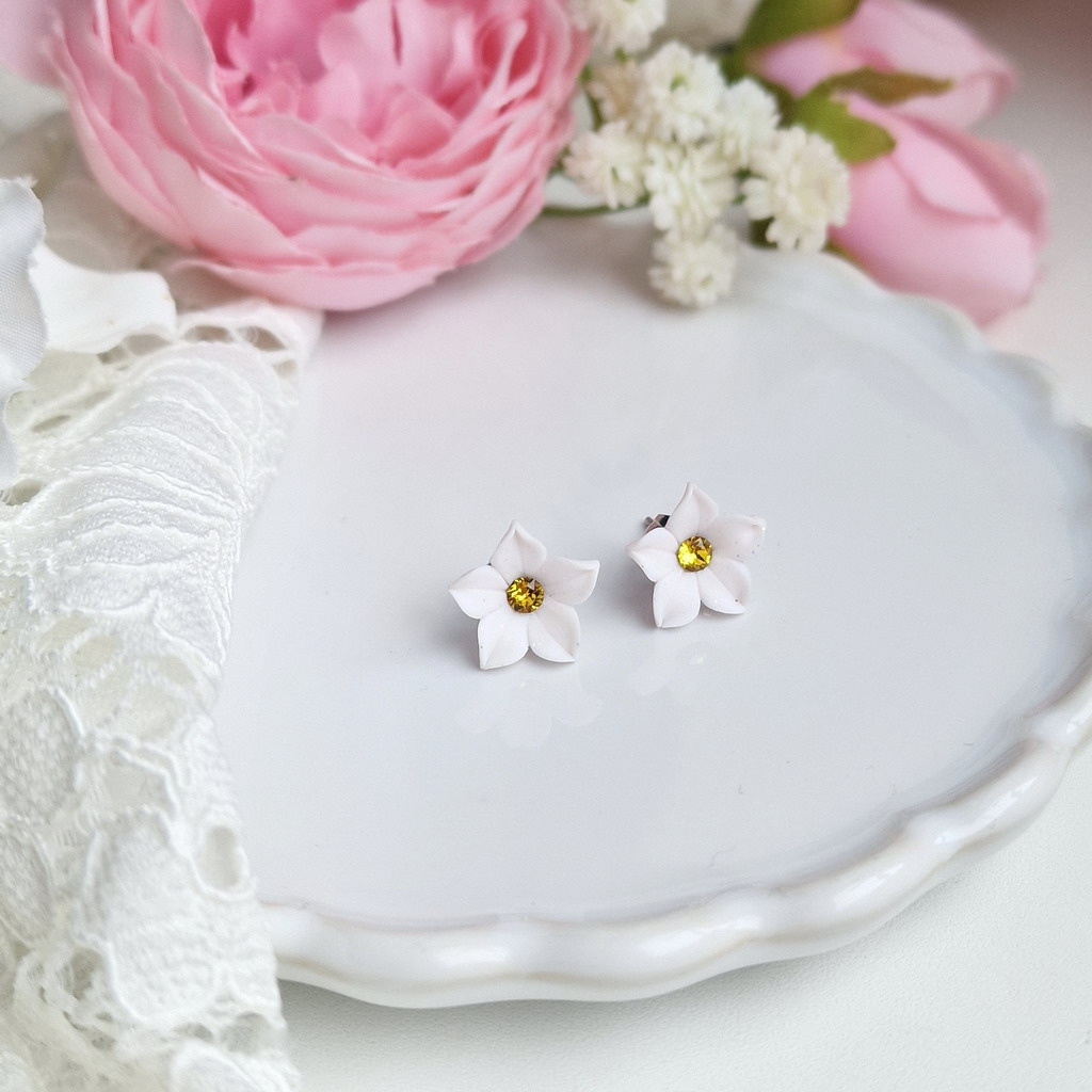 Něžné malé kvítky do oušek, se špetkou třpytu a velkou dávkou romantiky.