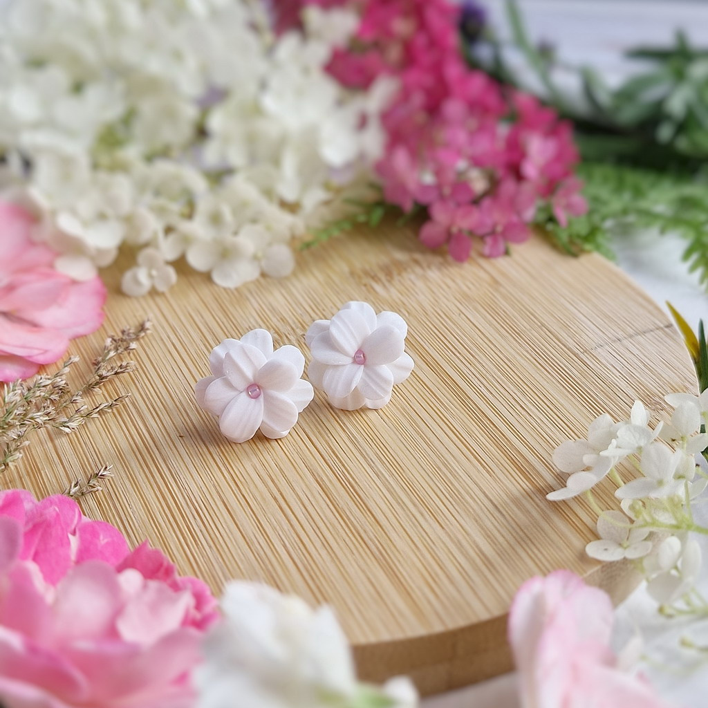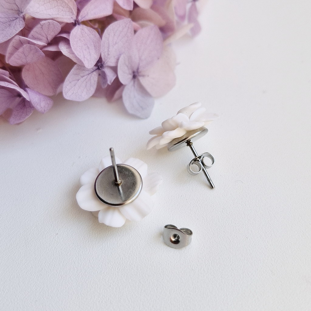 Půvabné, elegantní, ručně vyrobené náušnice s bílými květy pro romantický a něžný vzhled.
