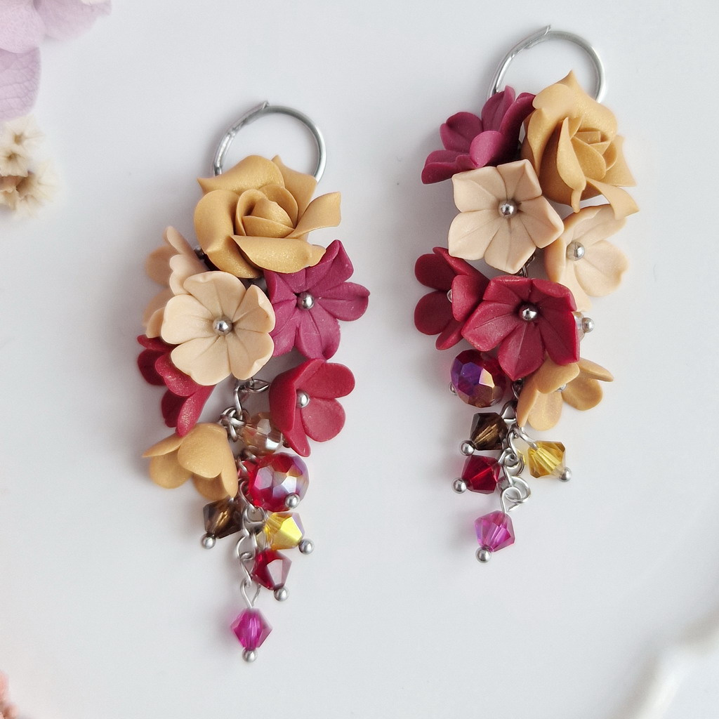 Rhona - kratší květinové náušnice s růžemi