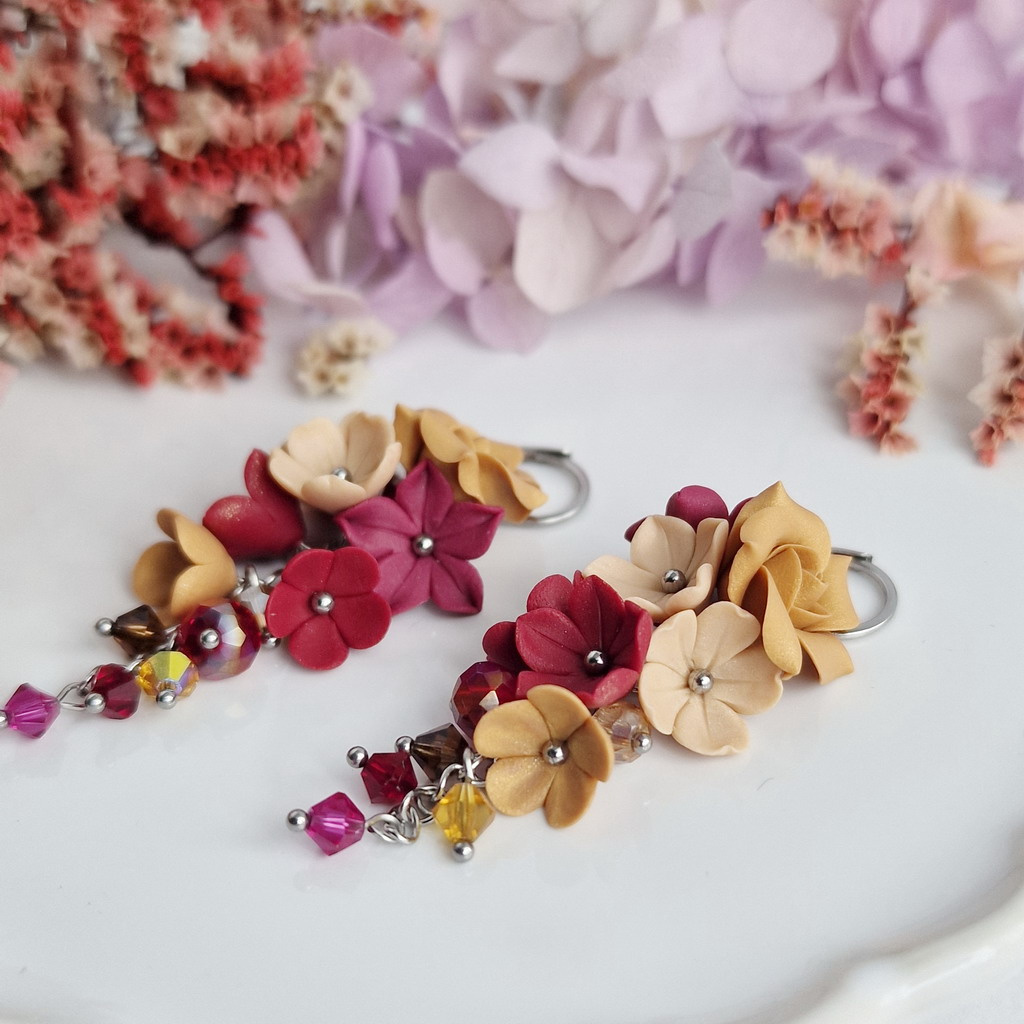Vynikají malými, ručně tvořenými kvítky a výběrem skleněných kamínků v hřejivém barevném ladění. Komponenty z chirurgické oceli zaručí dlouhou životnost a jsou vhodné i pro citlivou pleť.