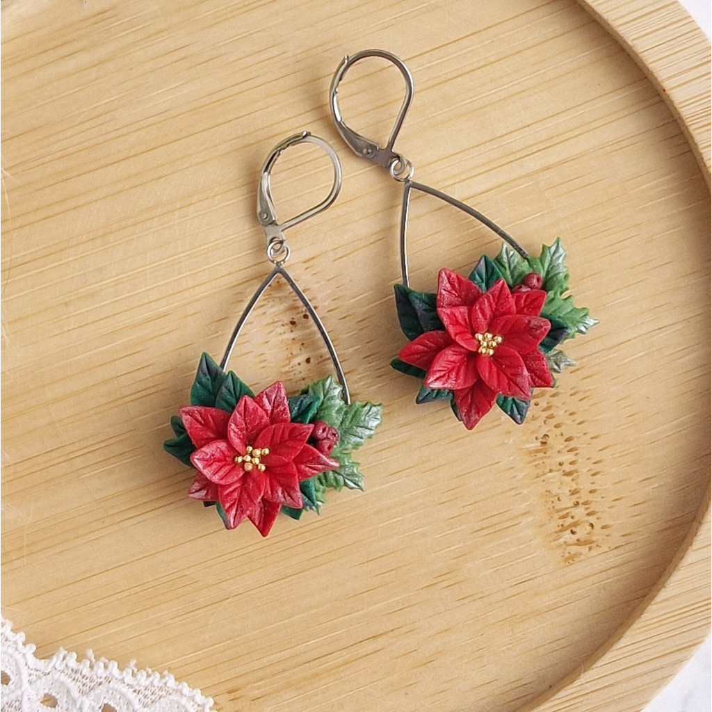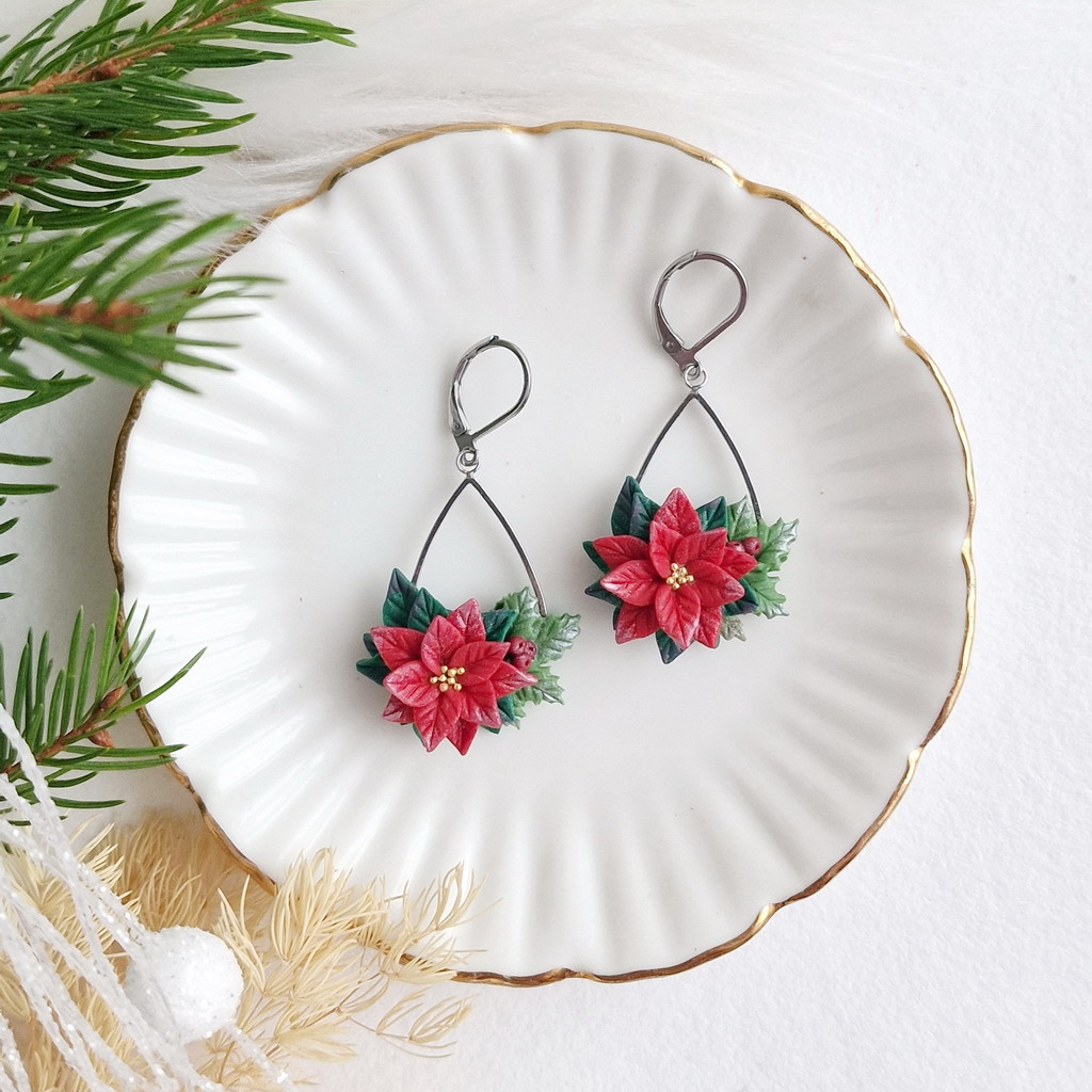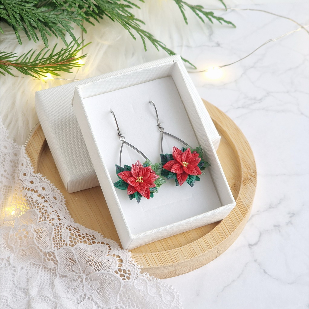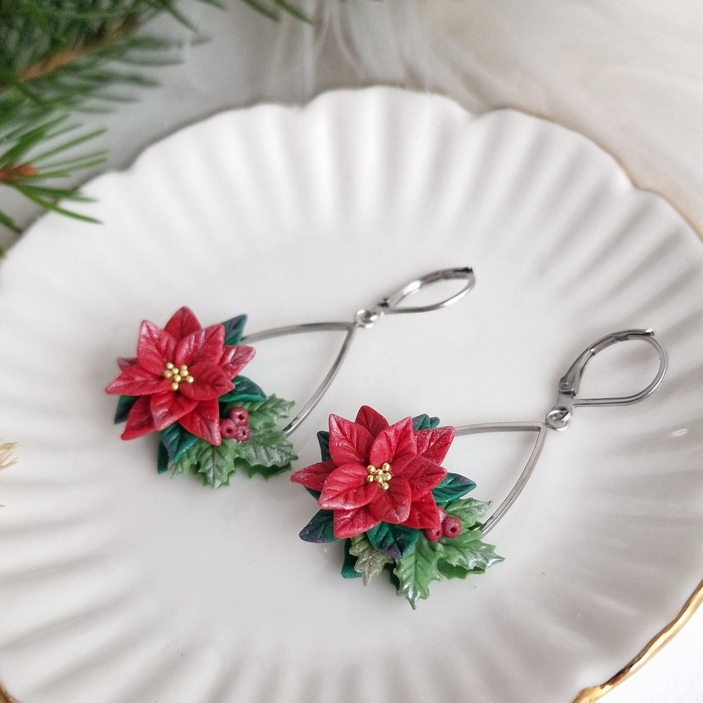 Kouzelné vánoční náušnice s poinsettií, které vás rozzáří. Lehounké a příjemné na nošení, stanou se nezbytnou součástí vaší vánoční kolekce šperků.