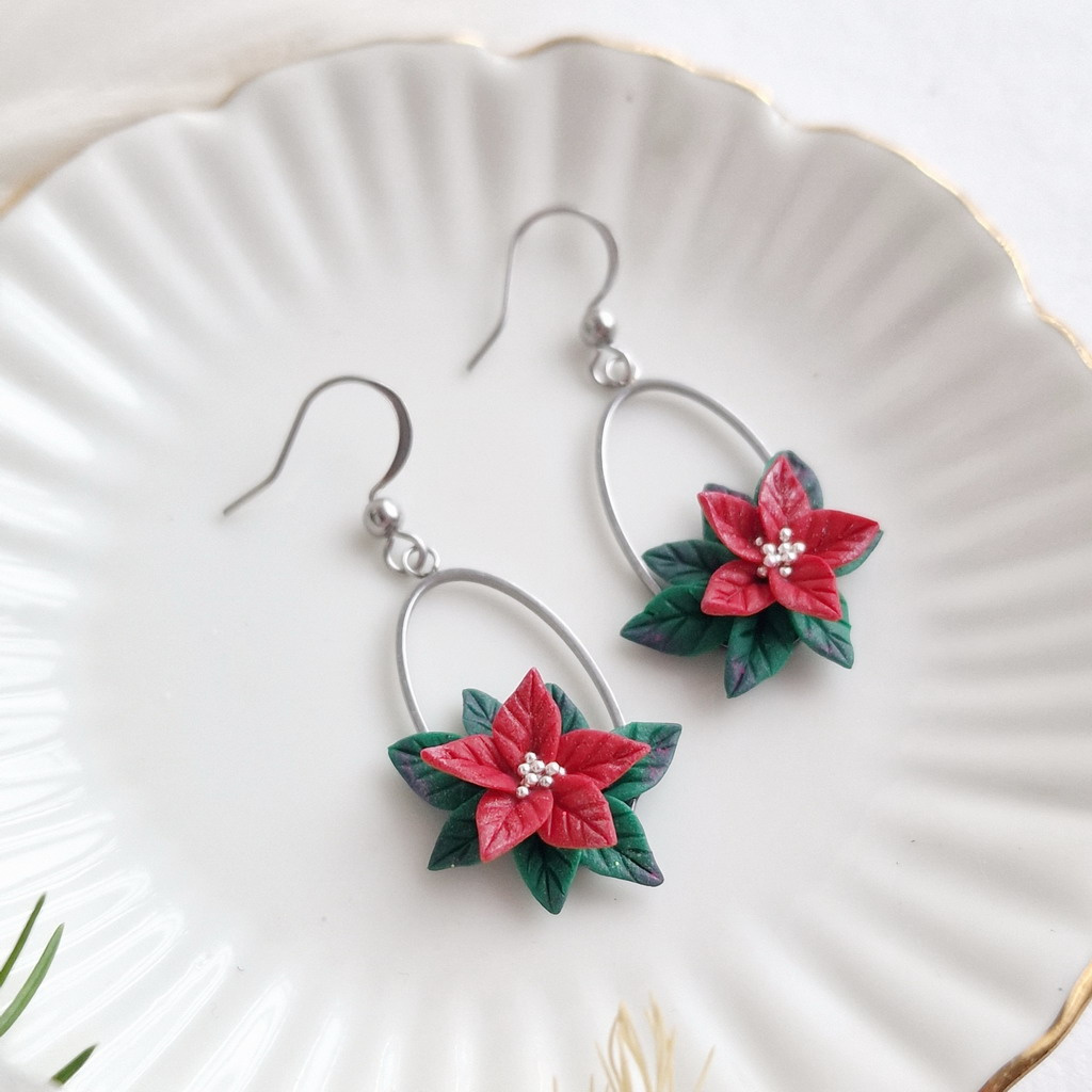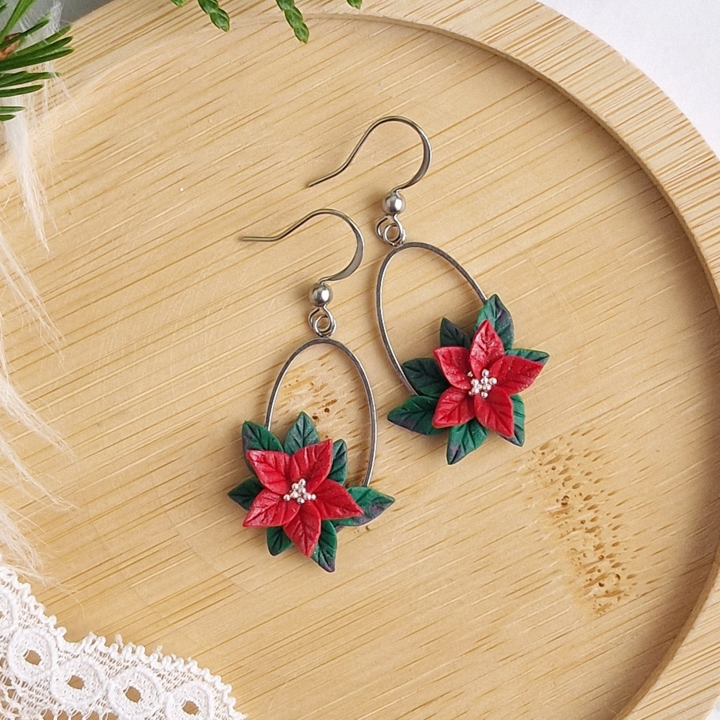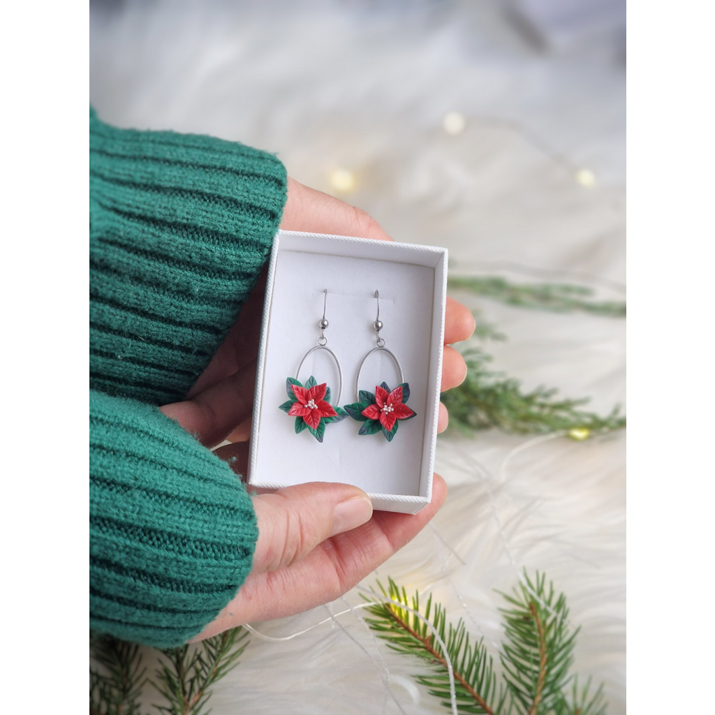 Kouzelné vánoční náušnice s poinsettií, které vás rozzáří. Lehounké a příjemné na nošení, stanou se nezbytnou součástí vaší vánoční kolekce šperků.