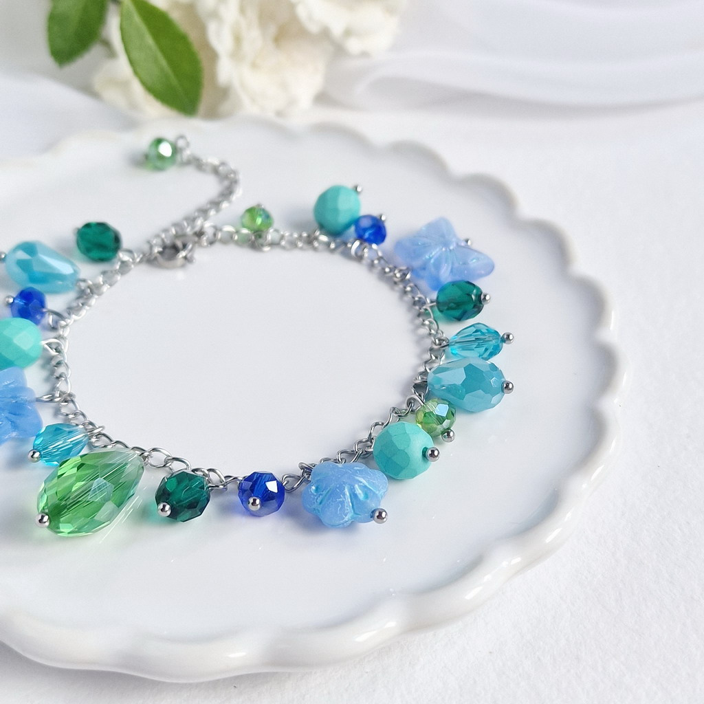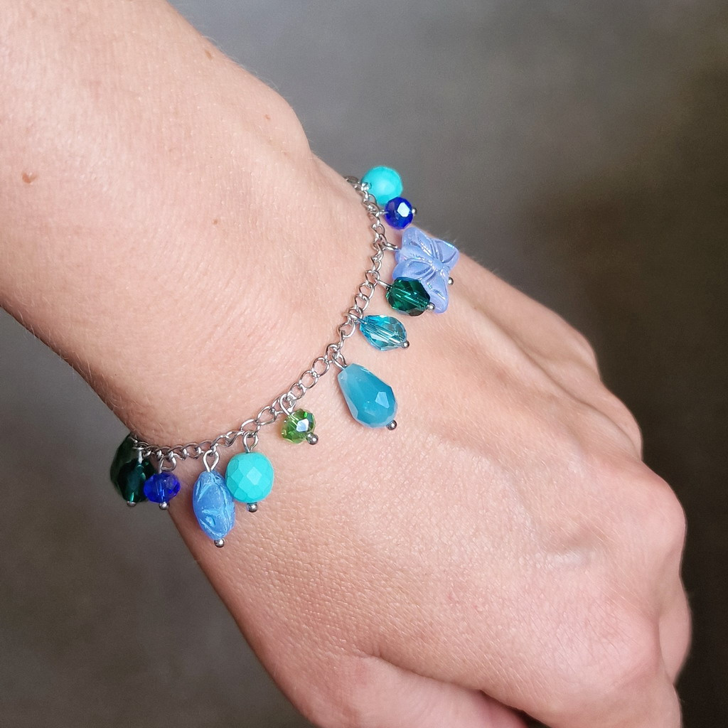Jedinečný design složený z pečlivě vybraných přívěsků a korálků rozmanitých barev a tvarů si zamilujete na první pohled. Díky vysoce kvalitní chirurgické oceli je náramek pevný a zachovává si svůj lesk po mnoho let.