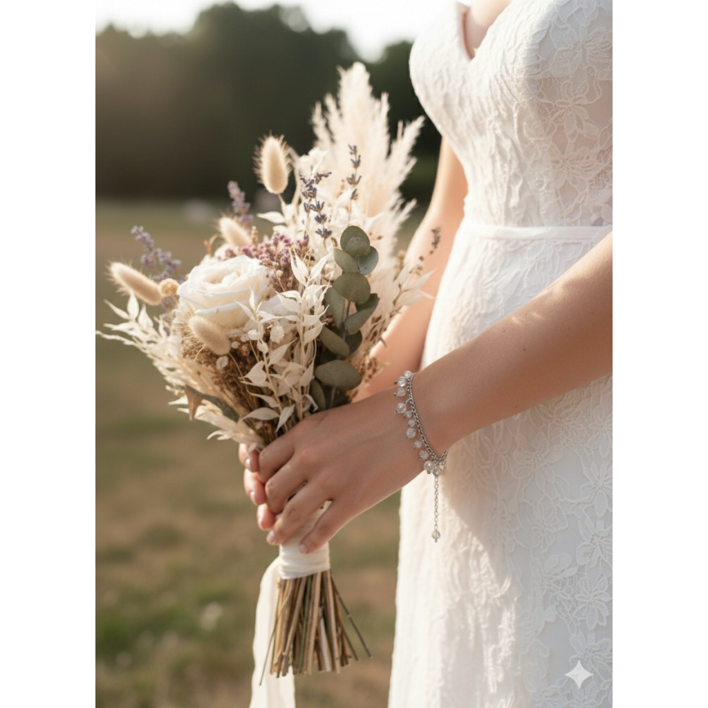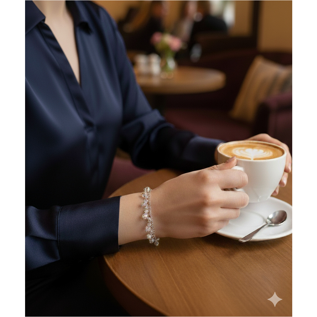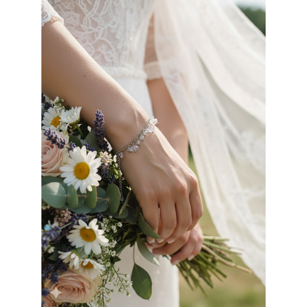 Kombinuje něžnou krásu květů z polymerových hmot, lesk a třpyt skleněných korálků a pevnost a odolnost nerezové oceli.