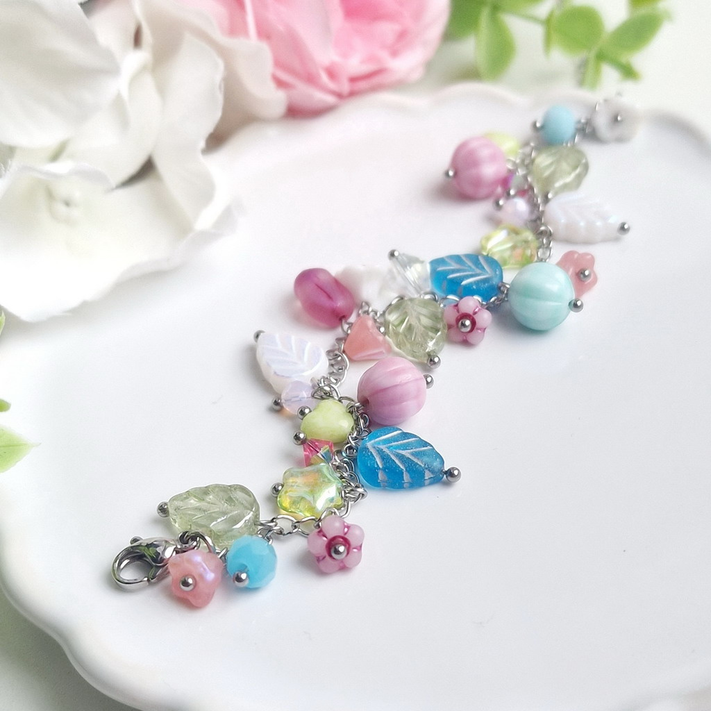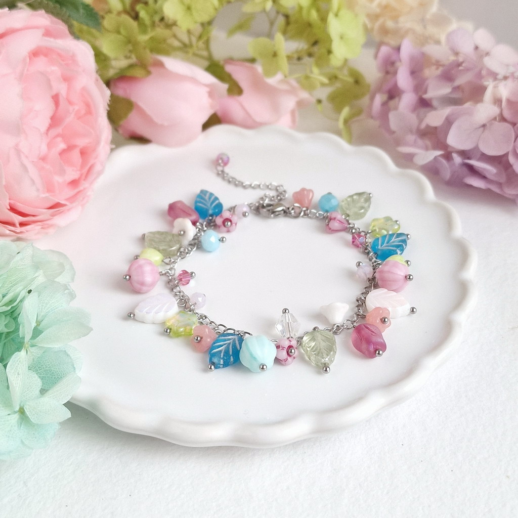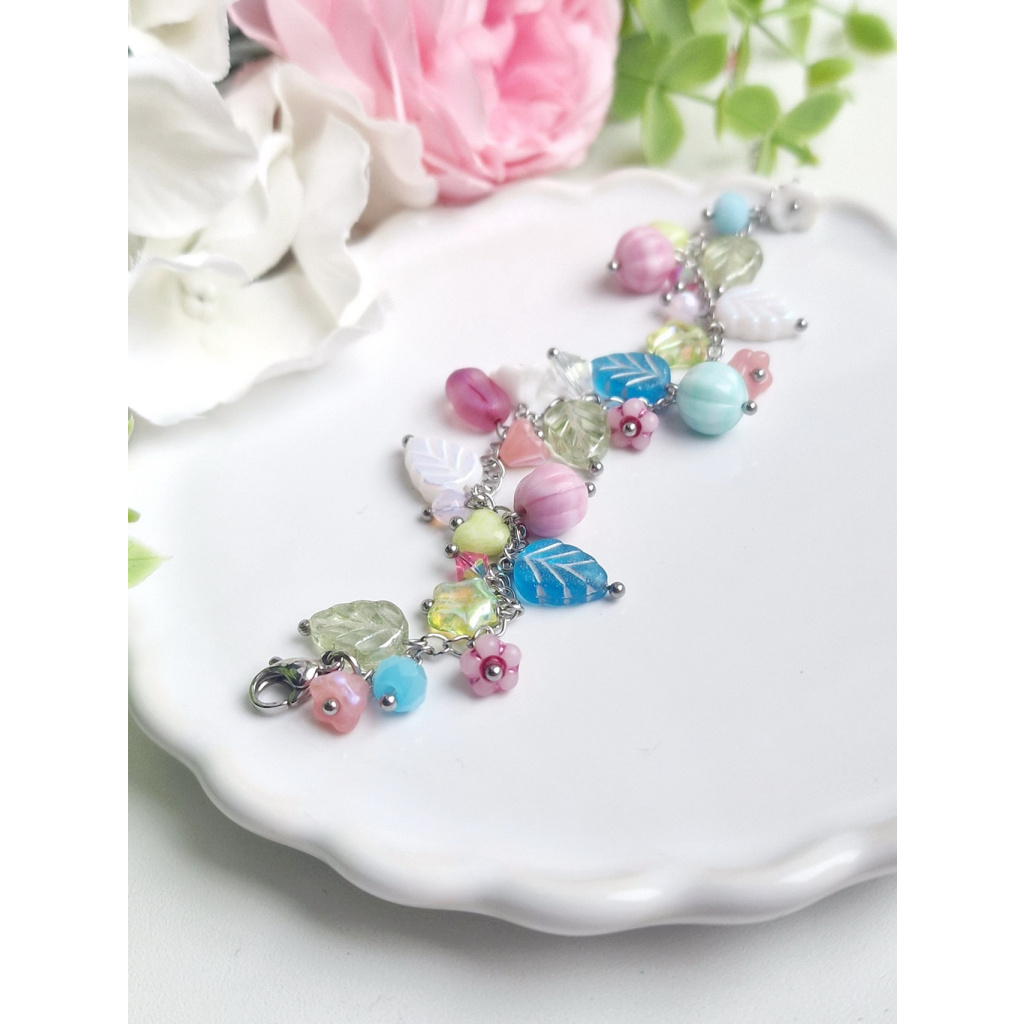 Leitis * jaro - ocelový náramek se skleněnými lístečky