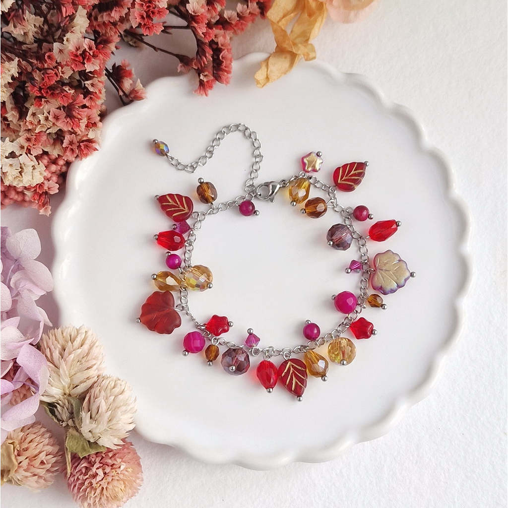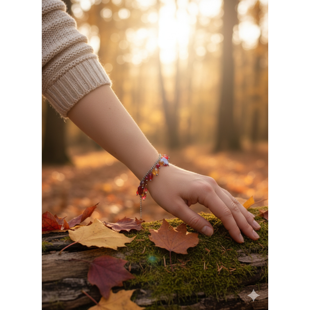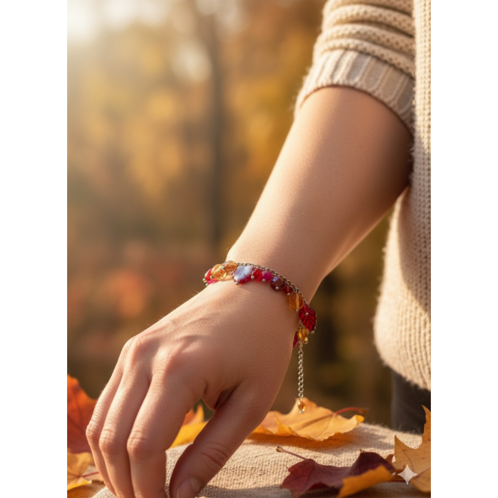 Leitis - ocelový náramek se skleněnými lístečky podzimní