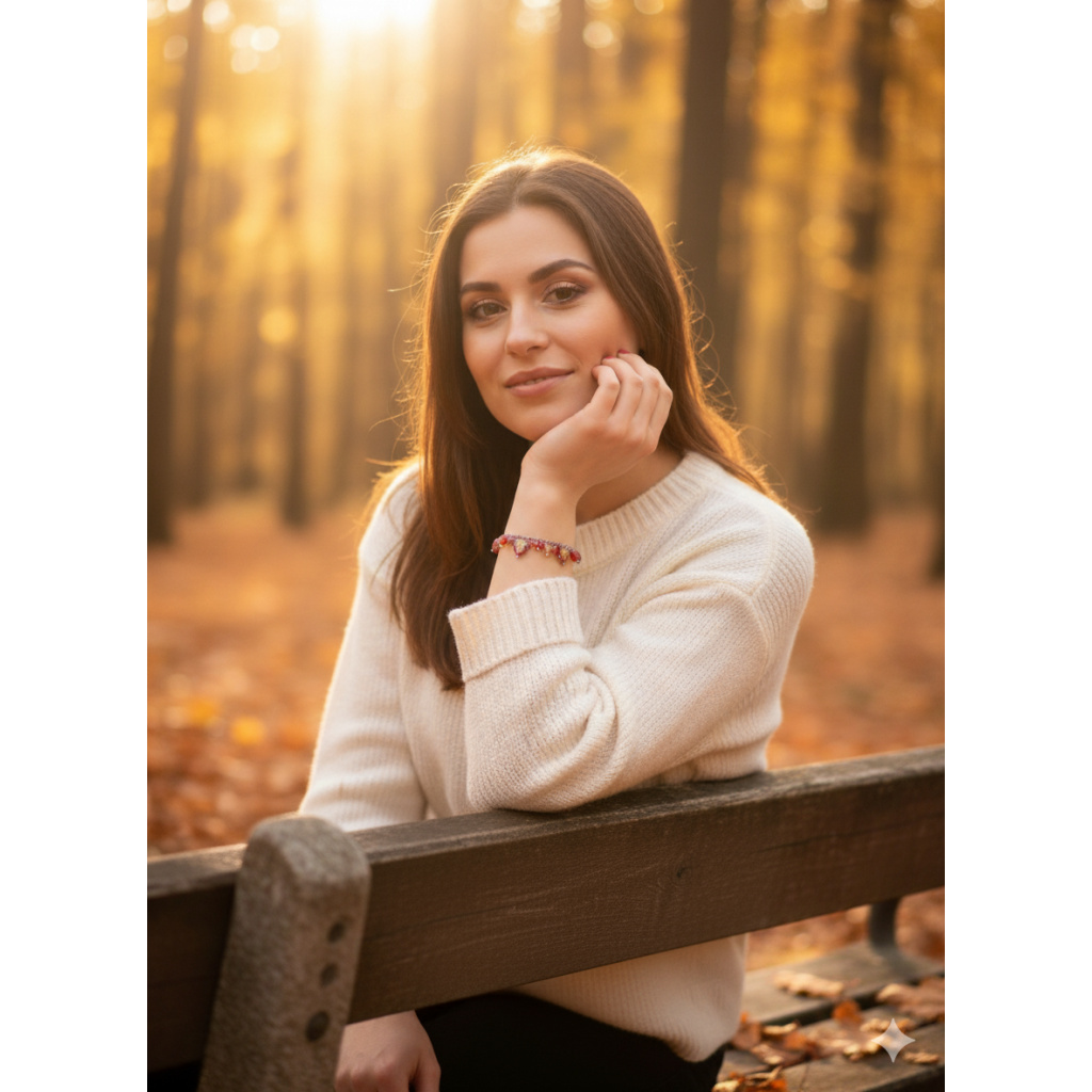 Náramek Leitis je jako malá zahrada plná barev a emocí, připravená rozkvést na vašem zápěstí. Nechte ho tančit a doprovázet vaše dny tichou poetickou melodií.