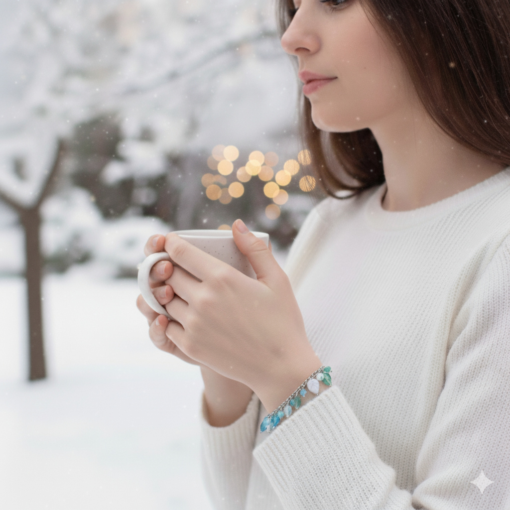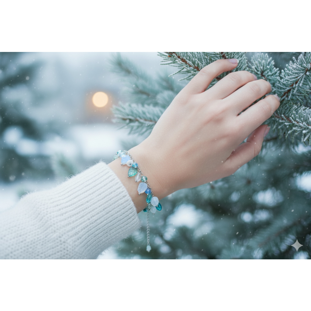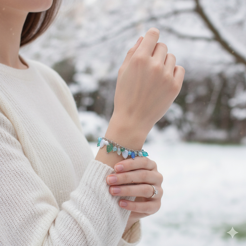Leitis * zima - ocelový náramek se skleněnými lístečky