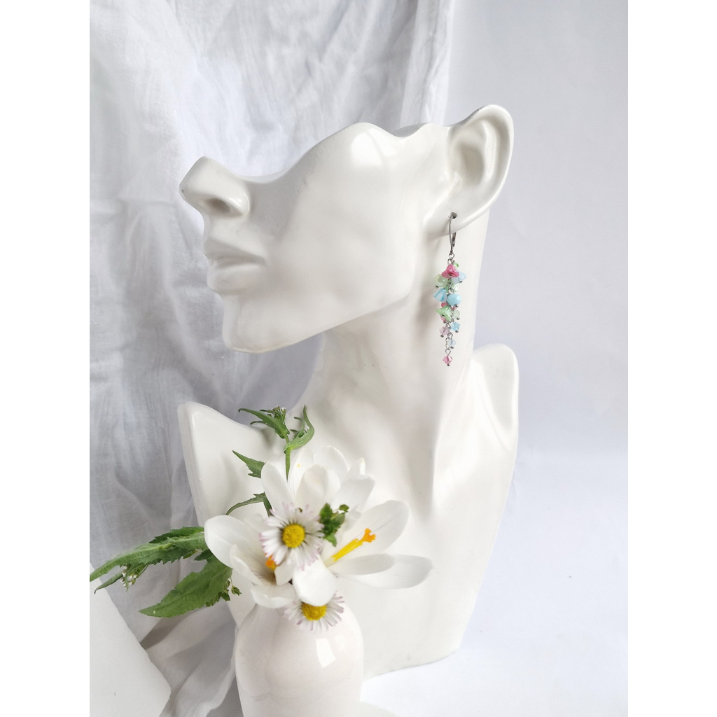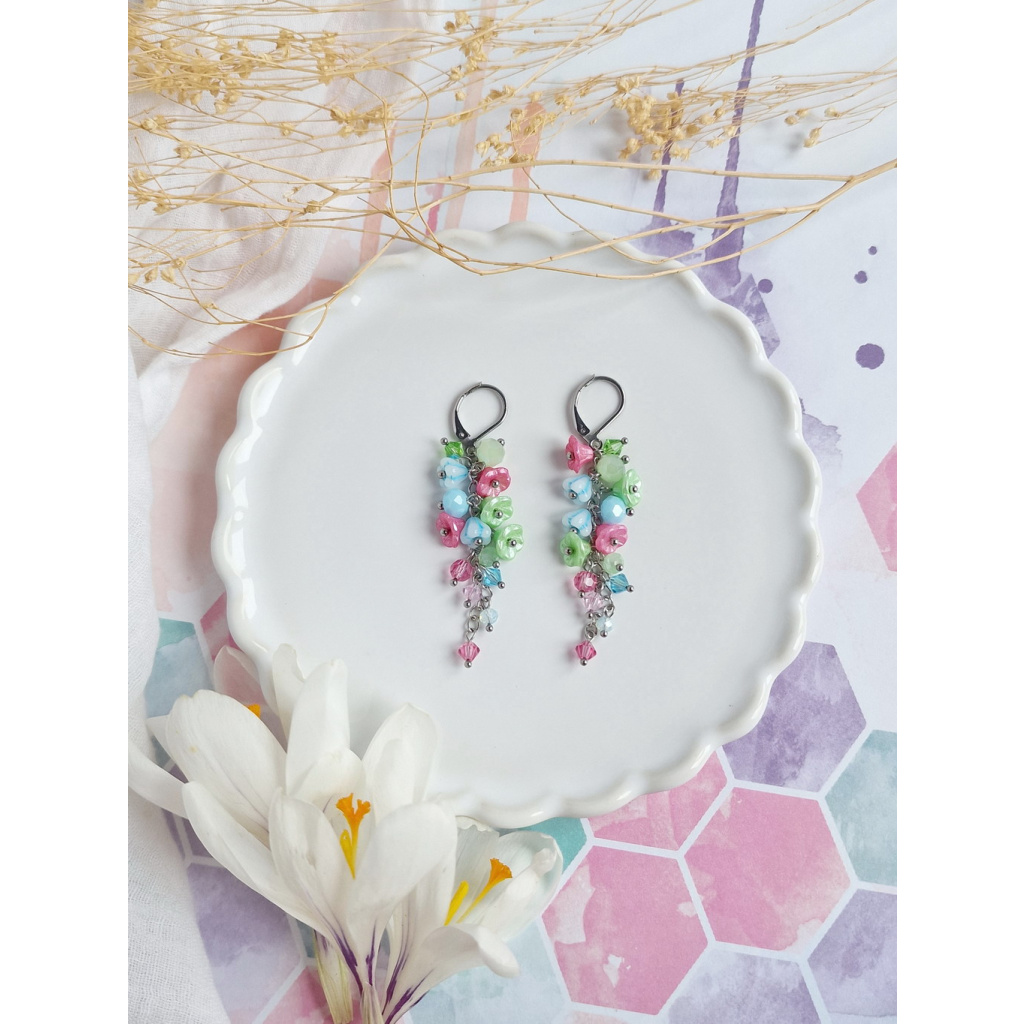Beatris - dlouhé náušnice se skleněnými květinkami