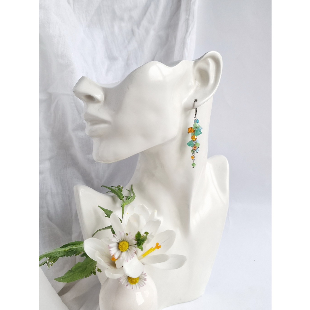 Beatris - dlouhé náušnice se skleněnými květinkami