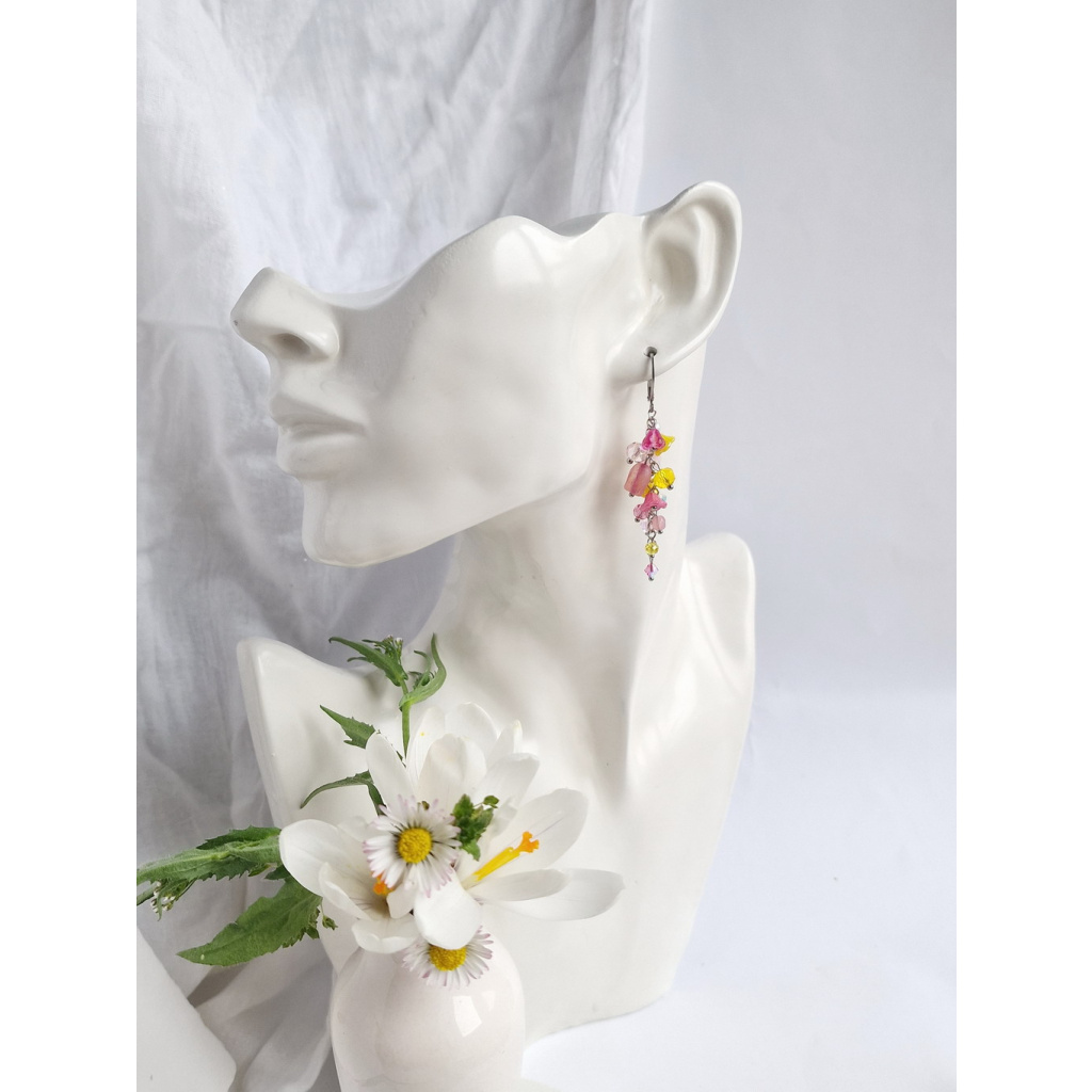 Beatris - dlouhé náušnice se skleněnými květinkami