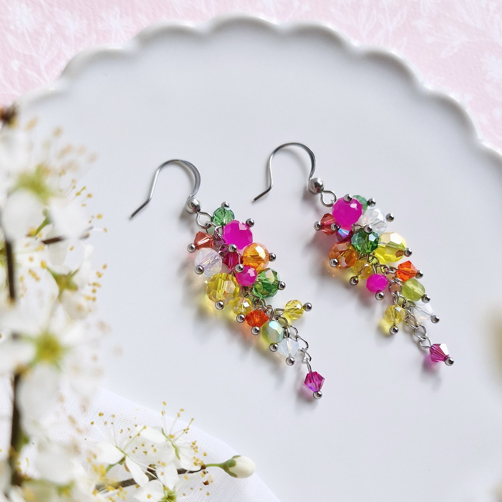 Beatris - náušnice se skleněnými krystaly kratší barevné