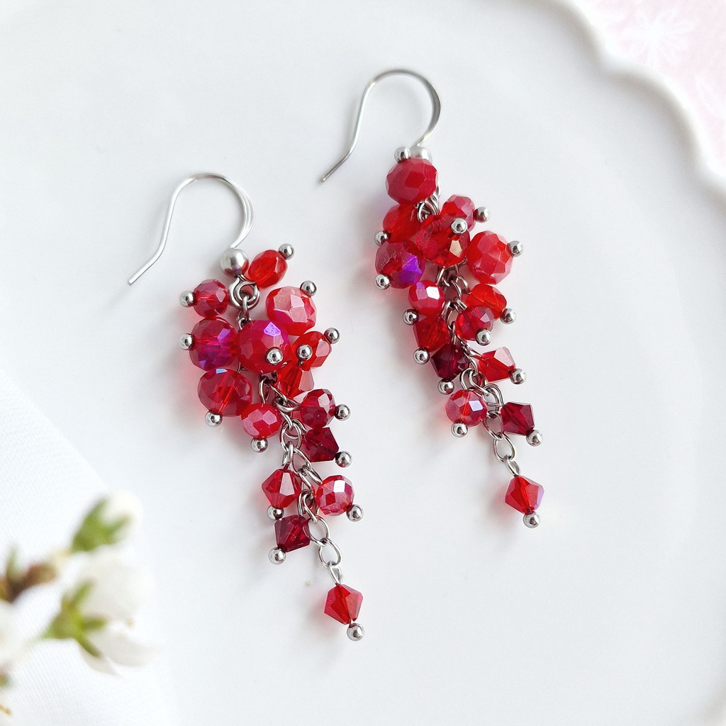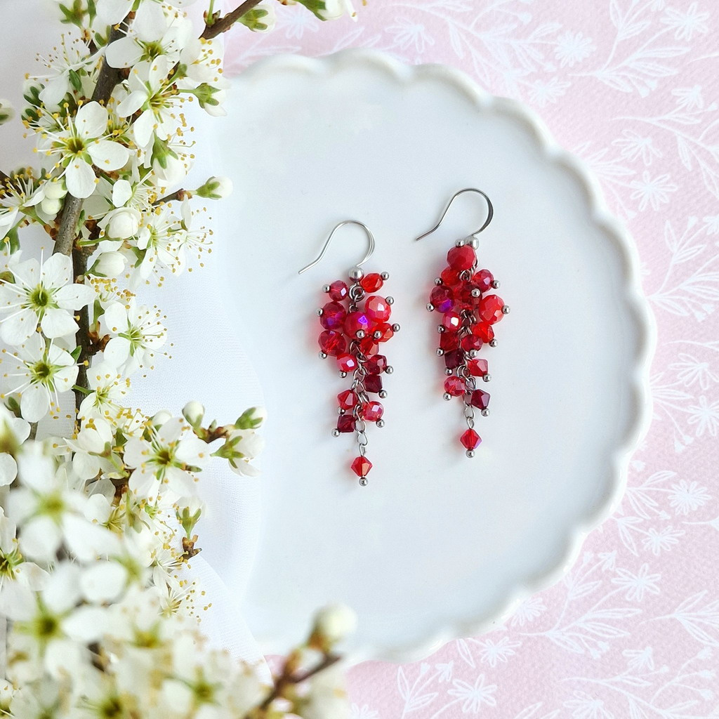 Beatris - náušnice se skleněnými krystaly kratší červené