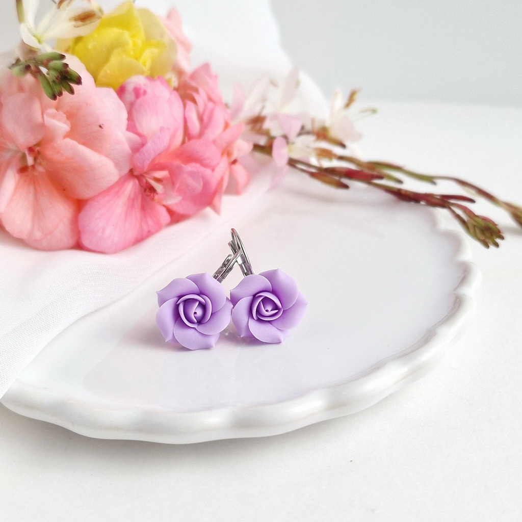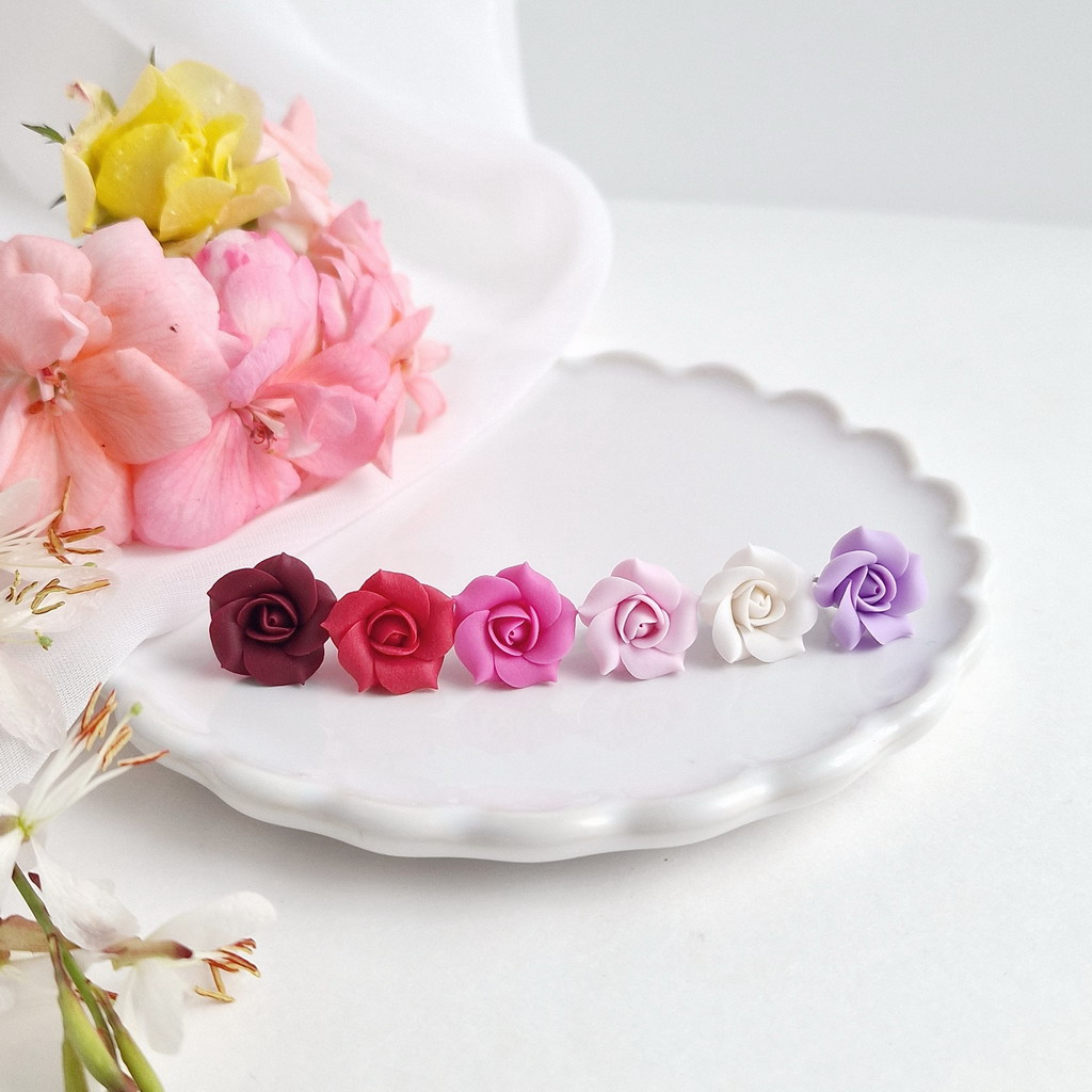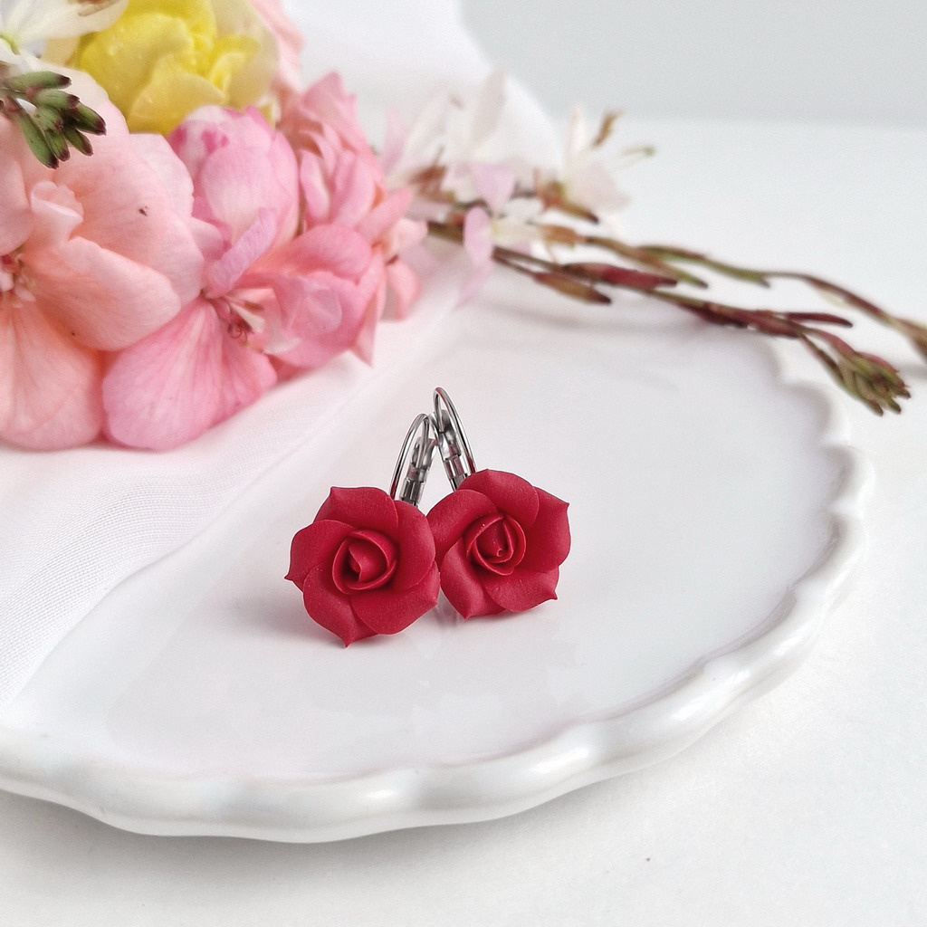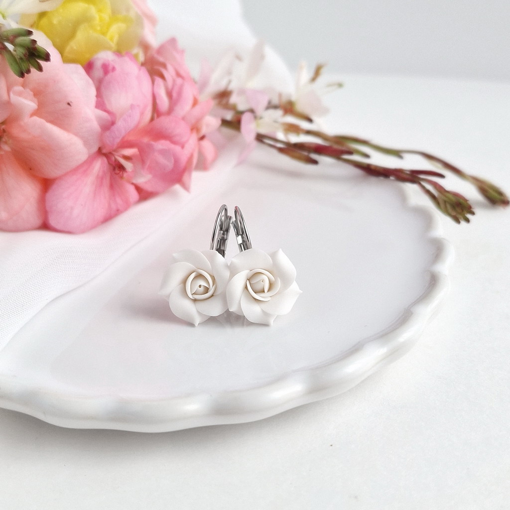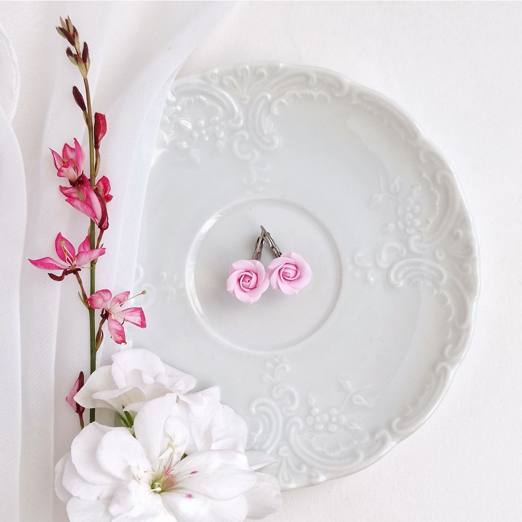 Pamatujte prosím na to, že růžičky modeluji v ruce, pečlivě skládám jeden okvětní lísteček ke druhému, bez použií vytlačovacích formiček. Nikdy tak nevyrobím dvě náušnice zcela totožné, ani tvarově, ani velikostně.