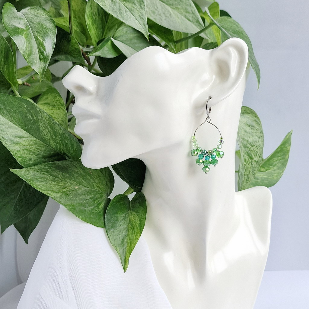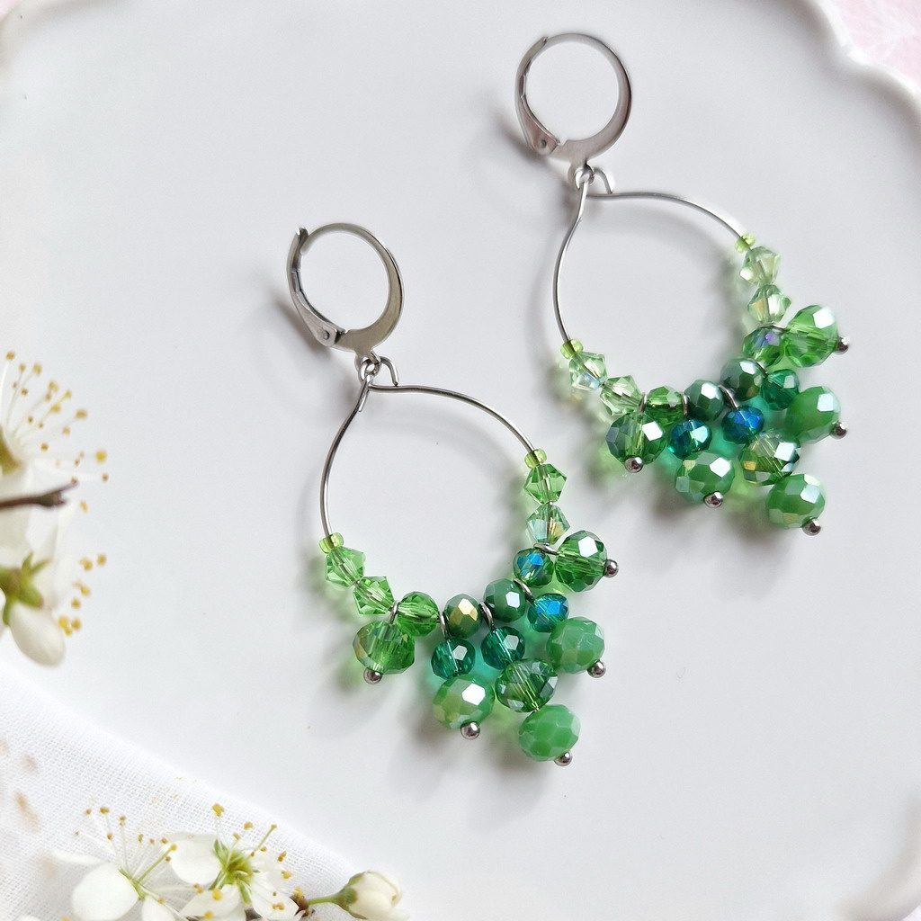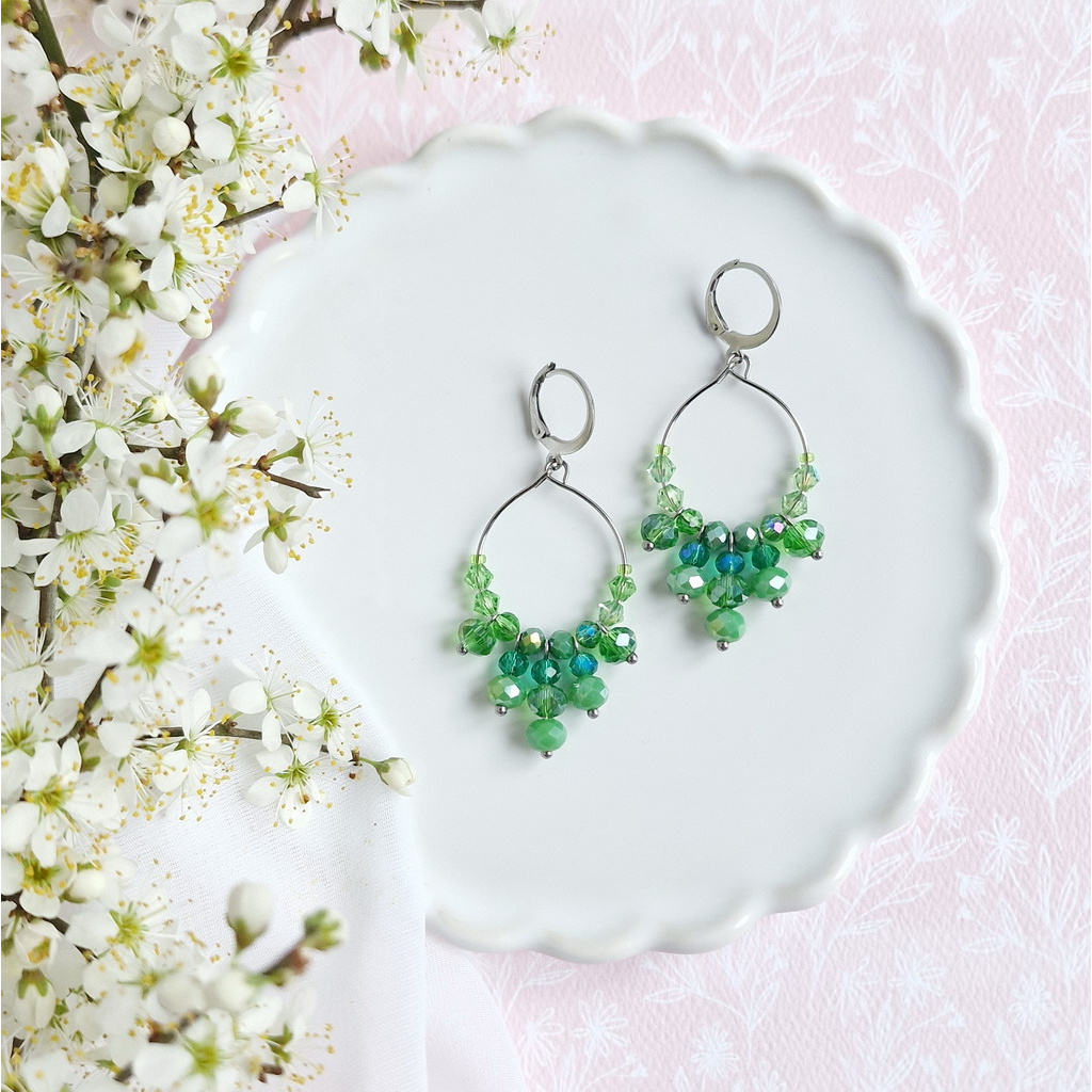 Sayuri - náušnice z oceli se skleněnými krystaly zelené