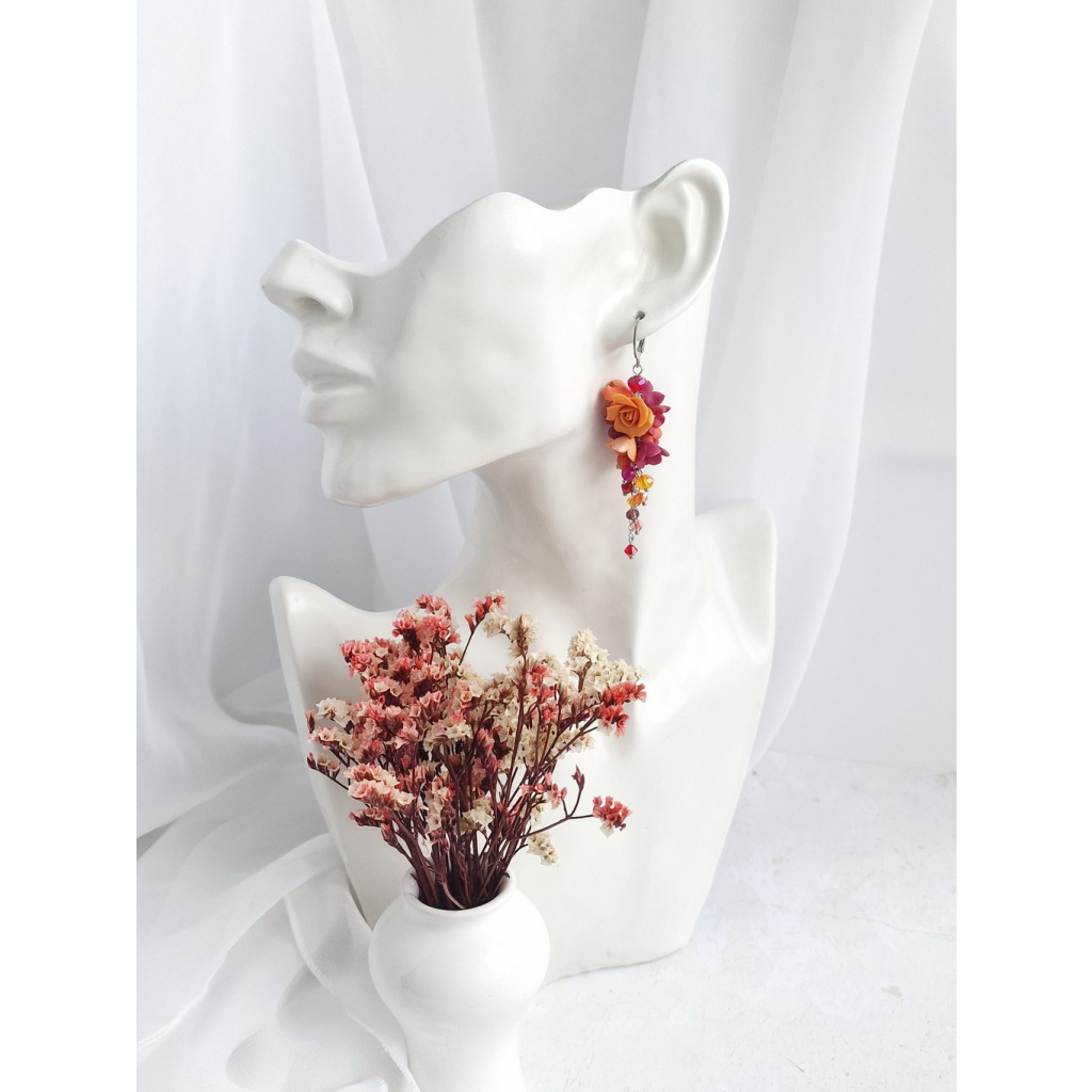 Maya - dlouhé květinové náušnice s růžemi