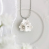 Kombinuje něžnou krásu květů z polymerových hmot, lesk a třpyt skleněných korálků a pevnost a odolnost nerezové oceli.
